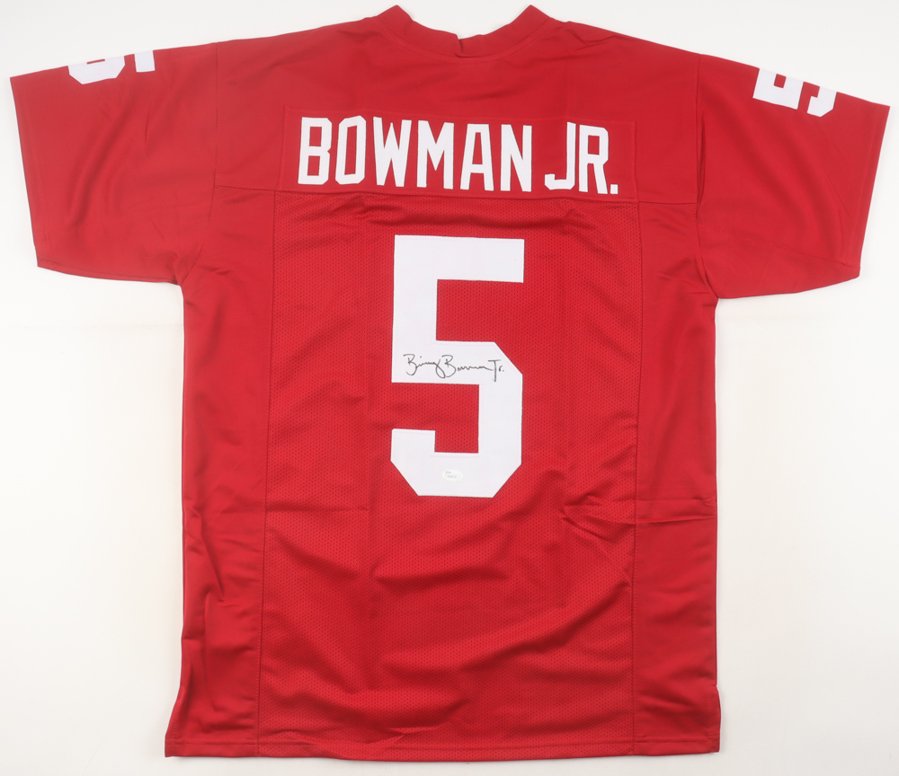 Custom jersey. Everything is sewn on, size XL. Has been hand-signed by Billy Bowman Jr.. Please note, glue is visible through the reverse number.