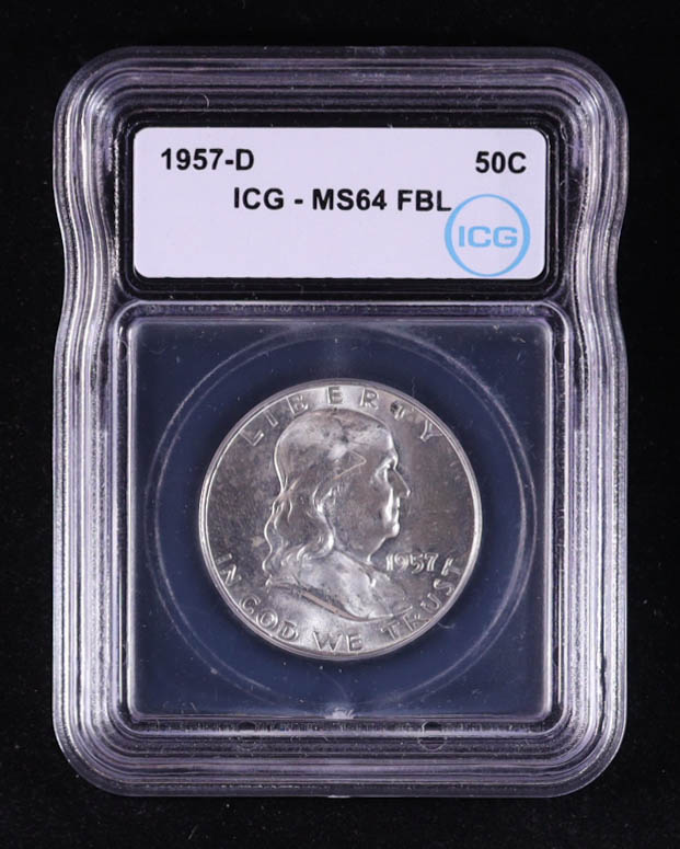 1957-D Franklin Silver Half Dollar (ICG MS64 FBL)