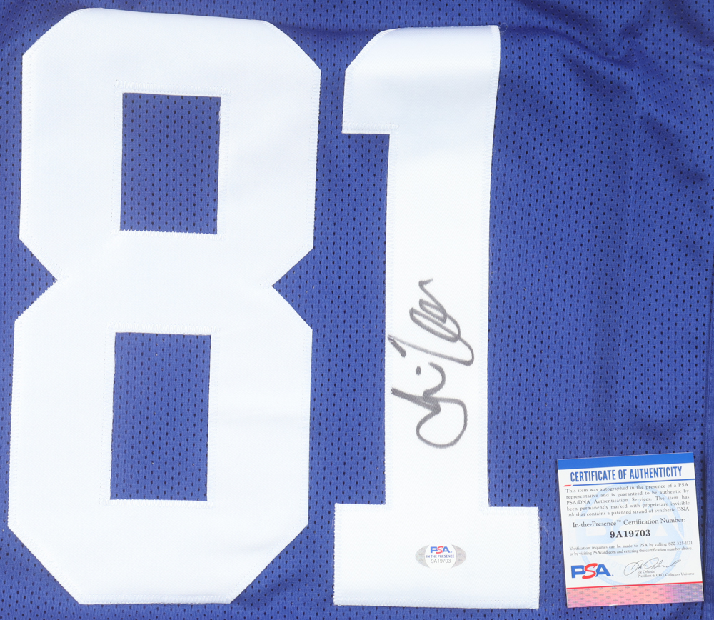 Custom jersey with everything sewn on, size XL. Hand-signed by Amani Toomer.