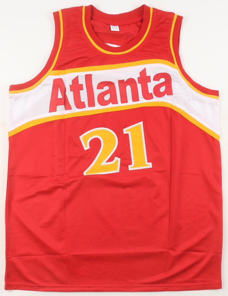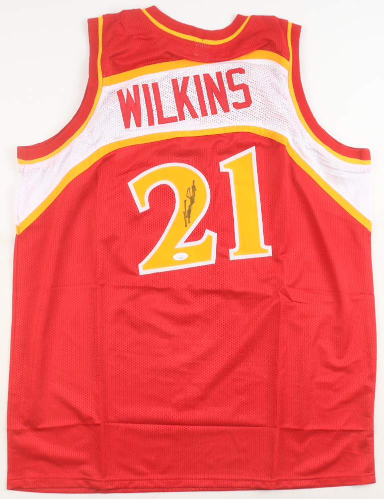 Custom jersey with everything sewn on, size XL. Hand-signed by Dominique Wilkins (HOF).