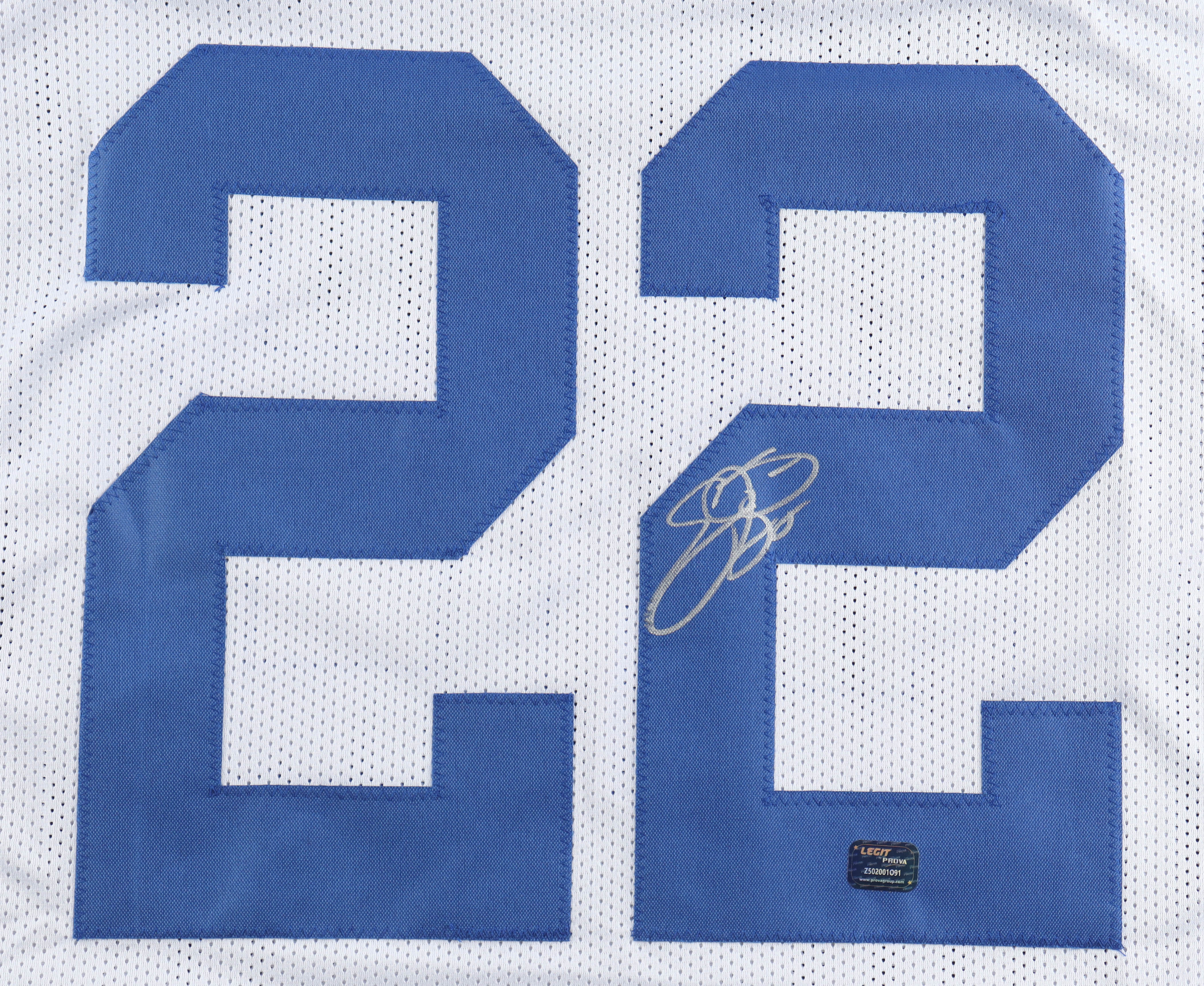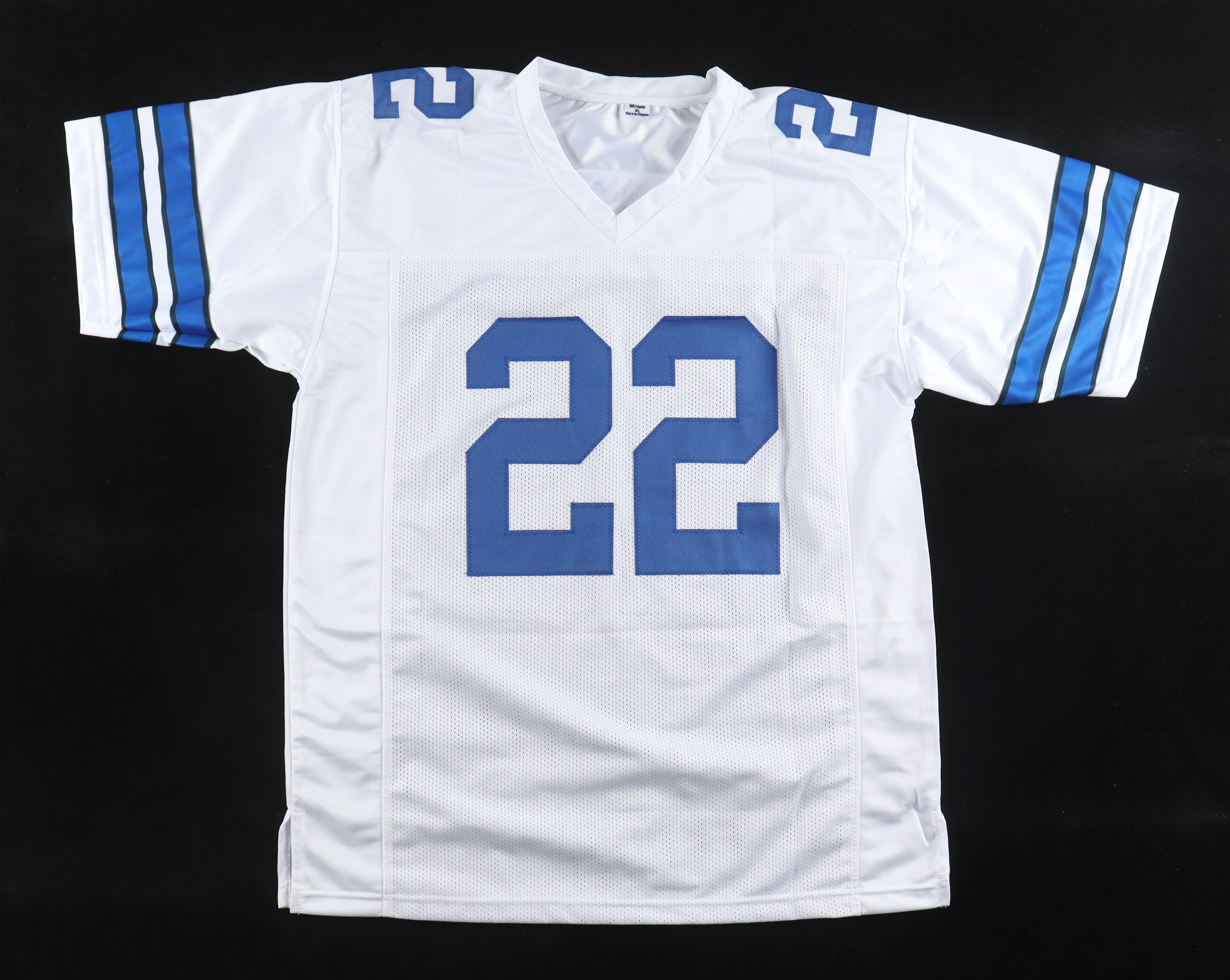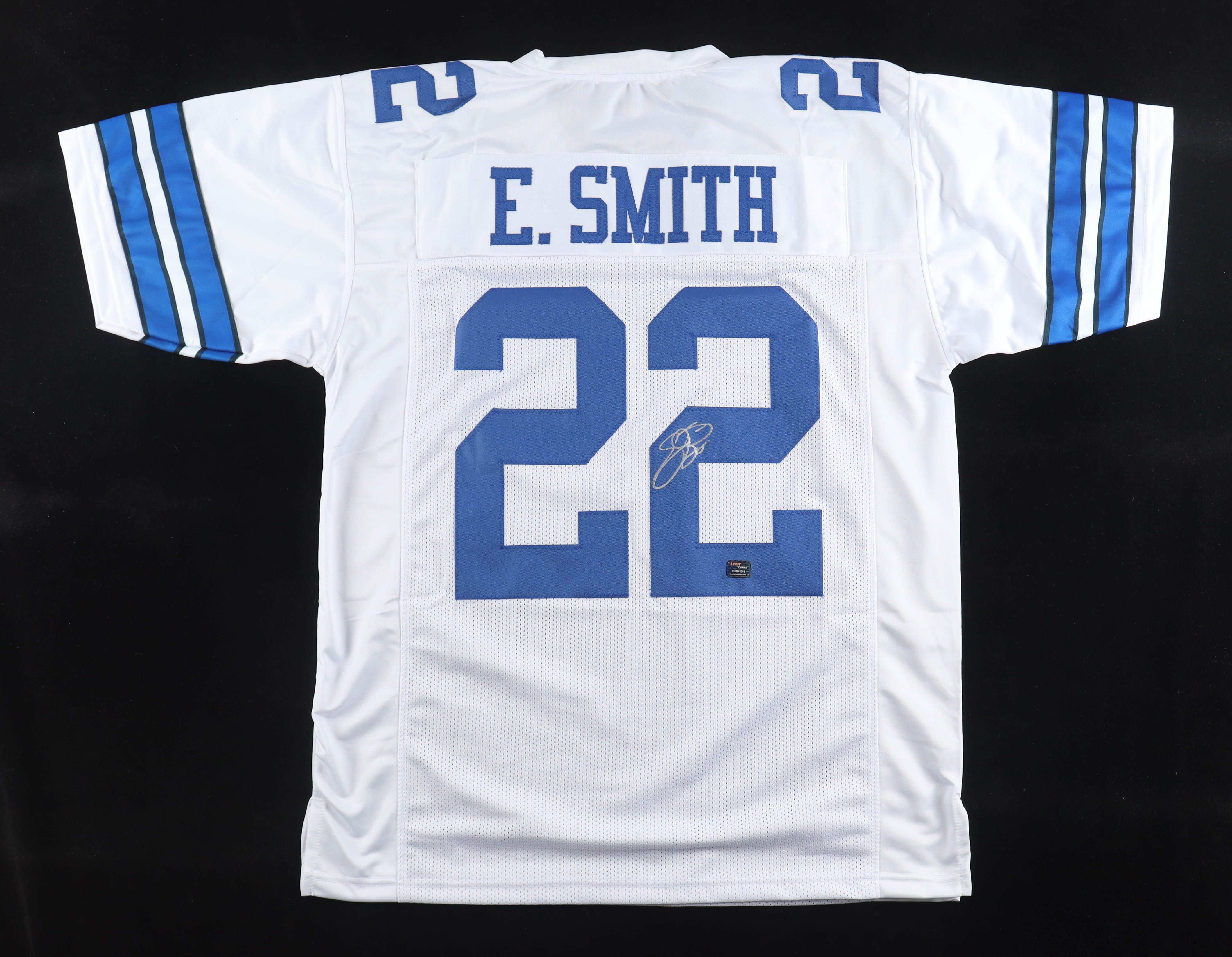 Custom jersey with everything sewn on, size XL. Hand-signed by Emmitt Smith (HOF).
