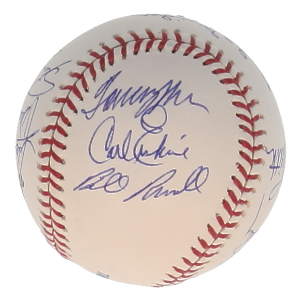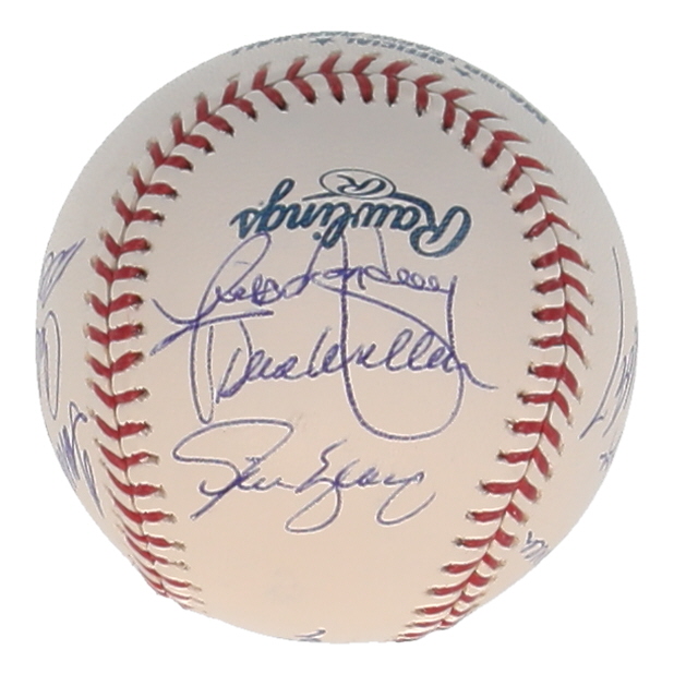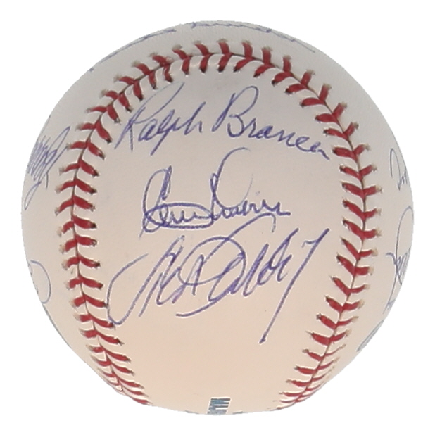 Rawlings Official Major League Baseball. Hand-signed by Duke Snider, Clem Labine, Steve Garvey, Ralph Branca, Carl Erskine, Reggie Smith, Ron Cey, Bill Russell, Dave Wallace, Tommy John, Steve Yeager, and Rick Monday. Please note, there are minor stains throughout the baseball.