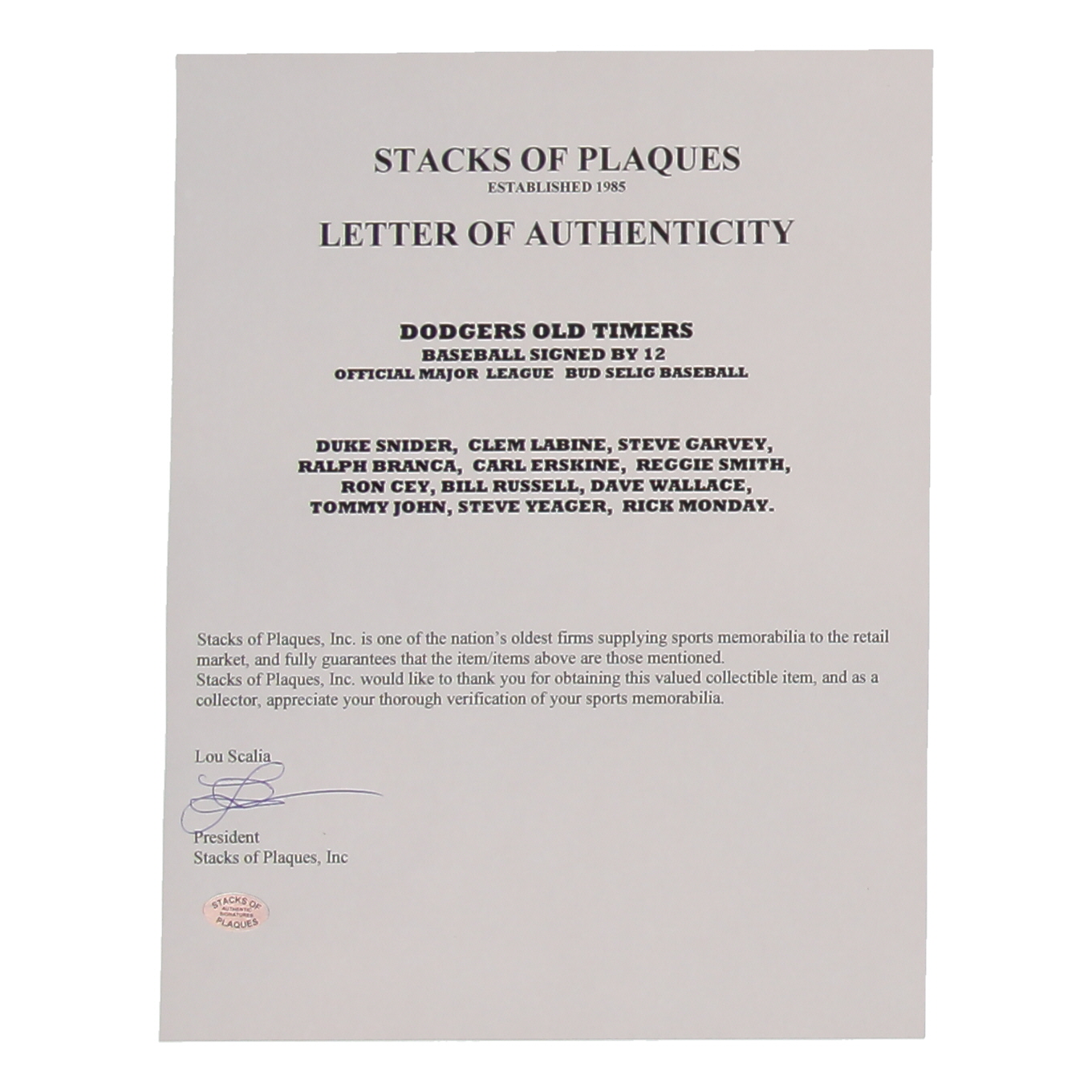 The lot / autograph(s) includes an official Stacks of Plaques letter of authenticity. Est. 1985, celebrating 35 plus years in the business.