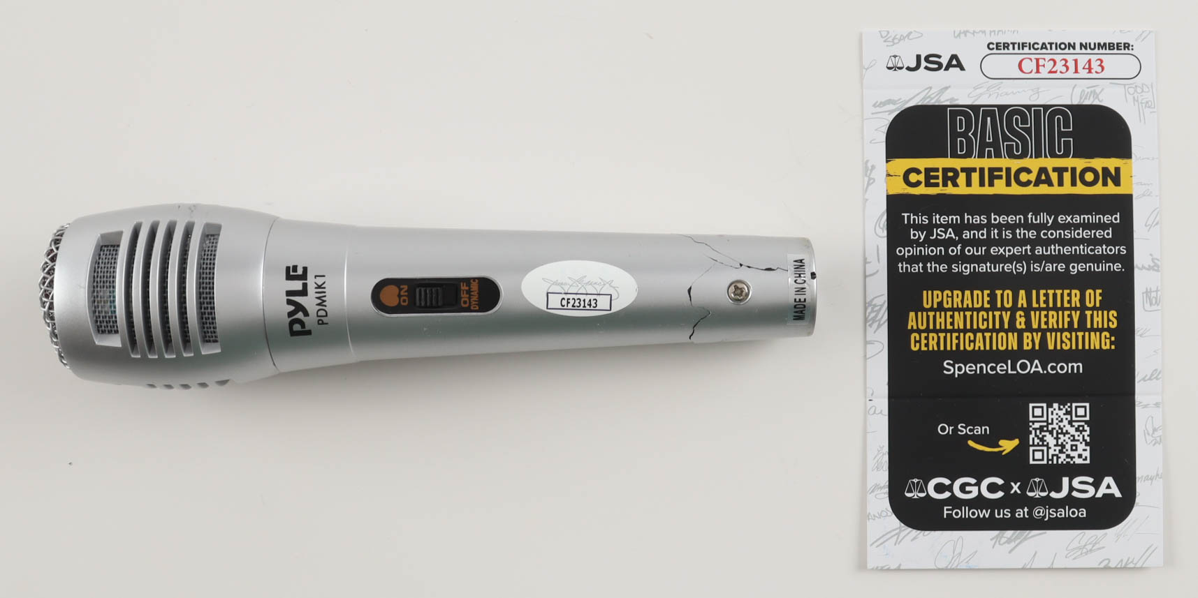 Pyle Microphone measures approximately 7" in length and has been hand-signed by Ralph Barbosa. Please note that the microphone is snapped at the bottom.