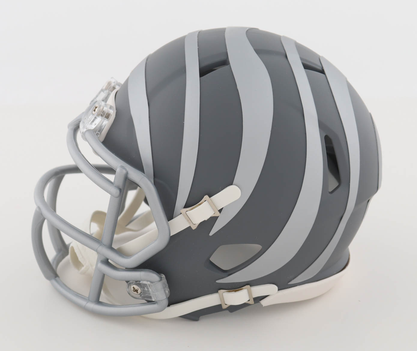 Riddell Cincinnati Bengals Slate Alternate speed mini helmet. Hand-signed by Chase Brown.