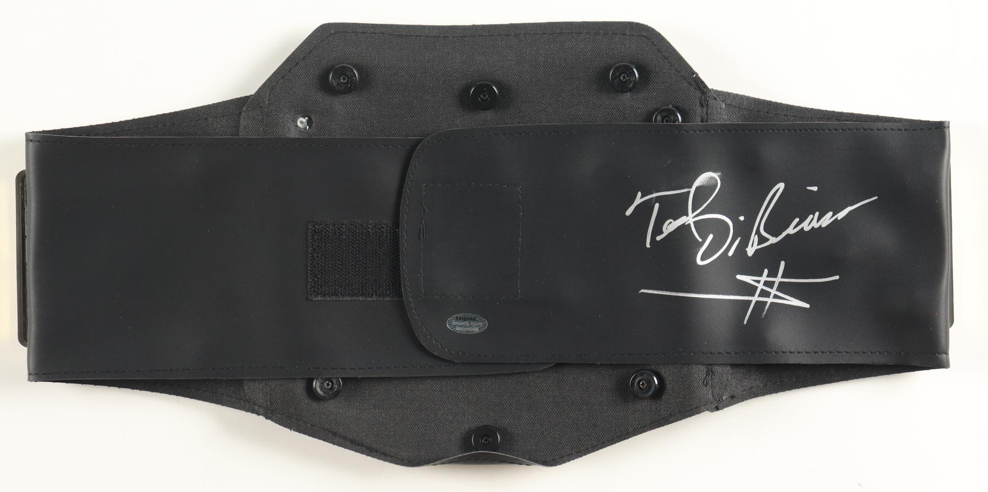Replica WWE Championship Belt (plastic) measures 38" in size and is hand-signed by Ted DiBiase (HOF). Please note that the signature is slightly smeared.