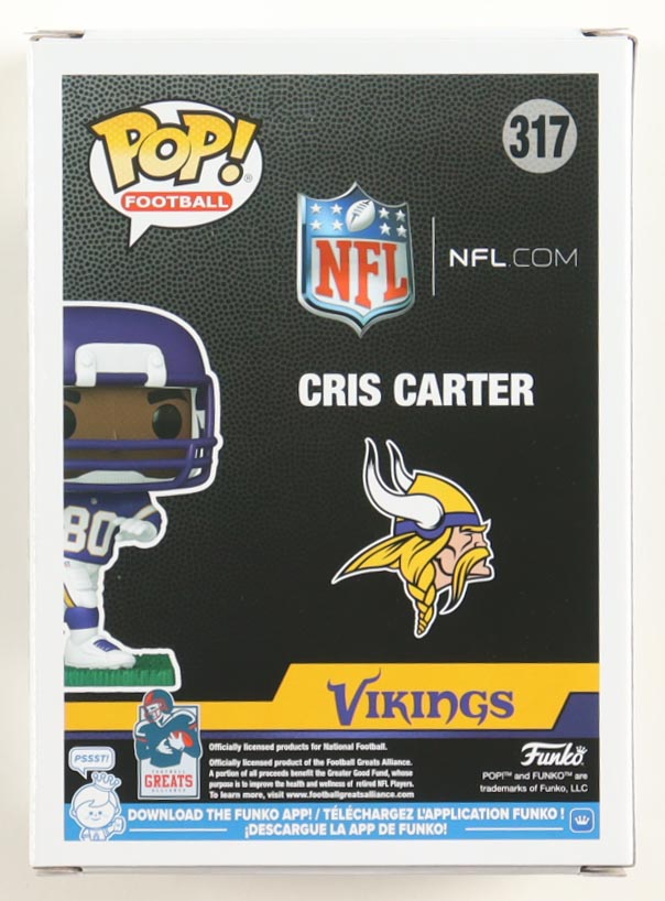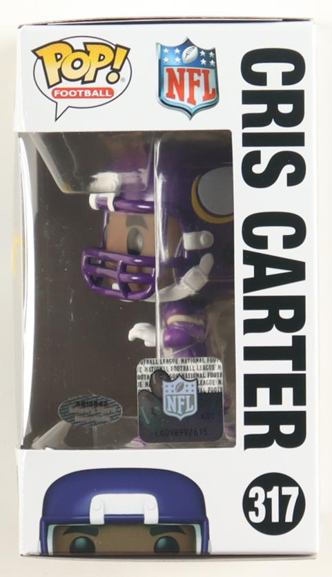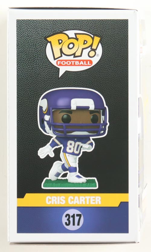 Funko Pop! vinyl figure measures approximately 4" in height. Hand-signed on the packaging by Cris Carter (Minnesota Vikings, HOF).