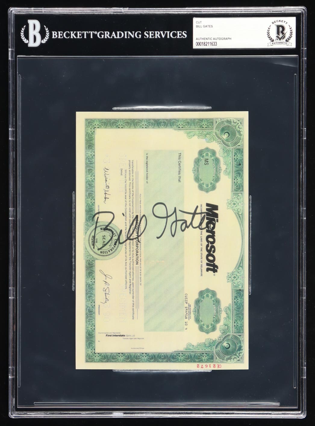 Microsoft Stock certificate print has been hand-signed by Bill Gates. Please see photos for details regarding the condition of the certificate print.