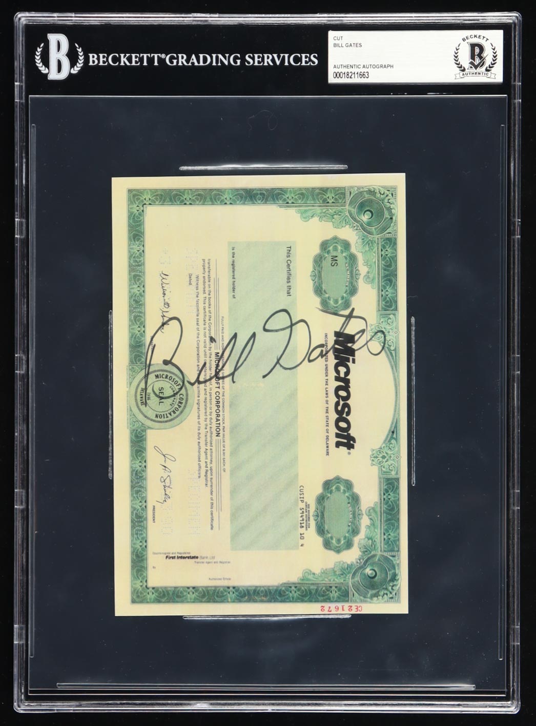 Microsoft Stock certificate print has been hand-signed by Bill Gates. Please see photos for details regarding the condition of the certificate print.