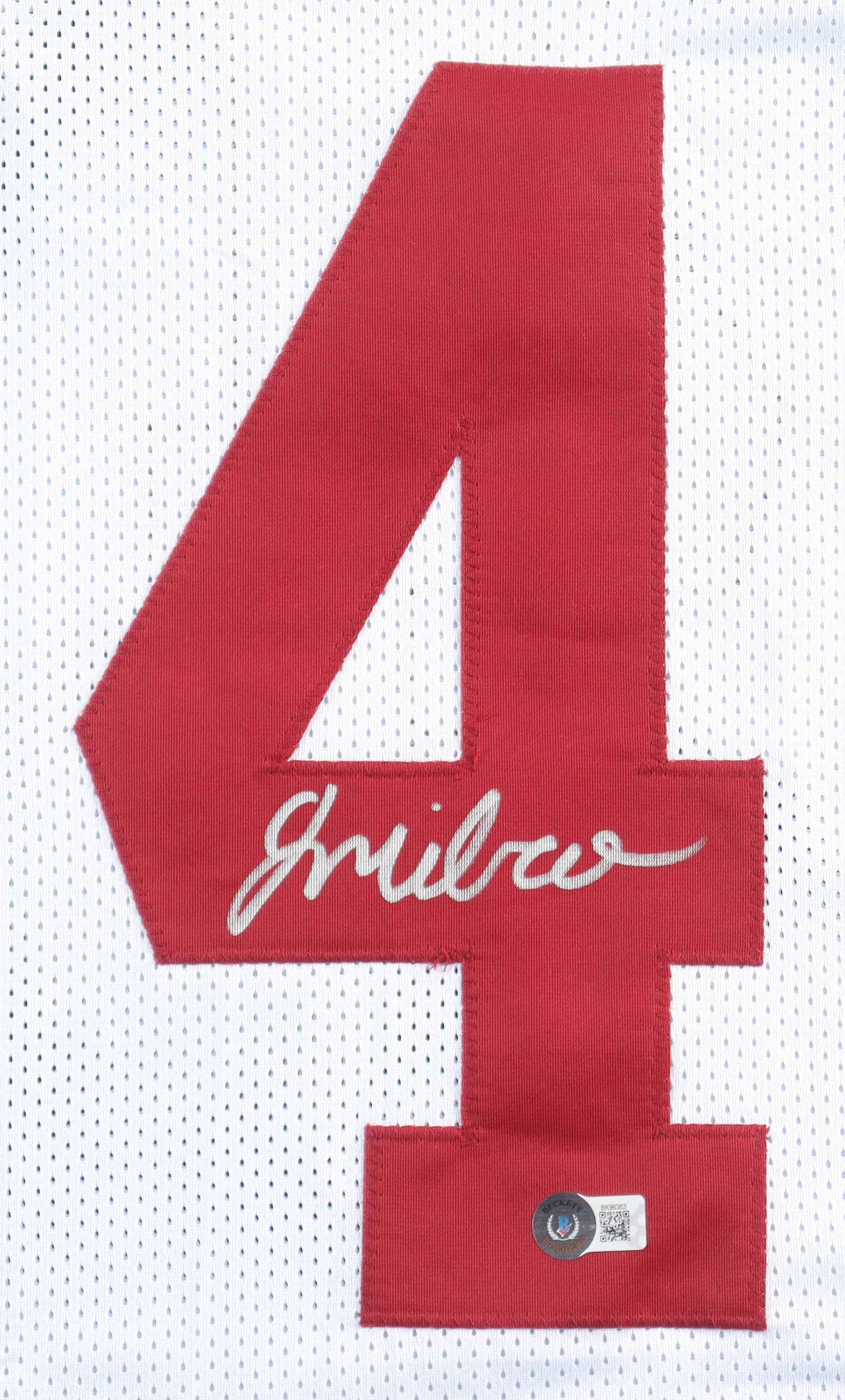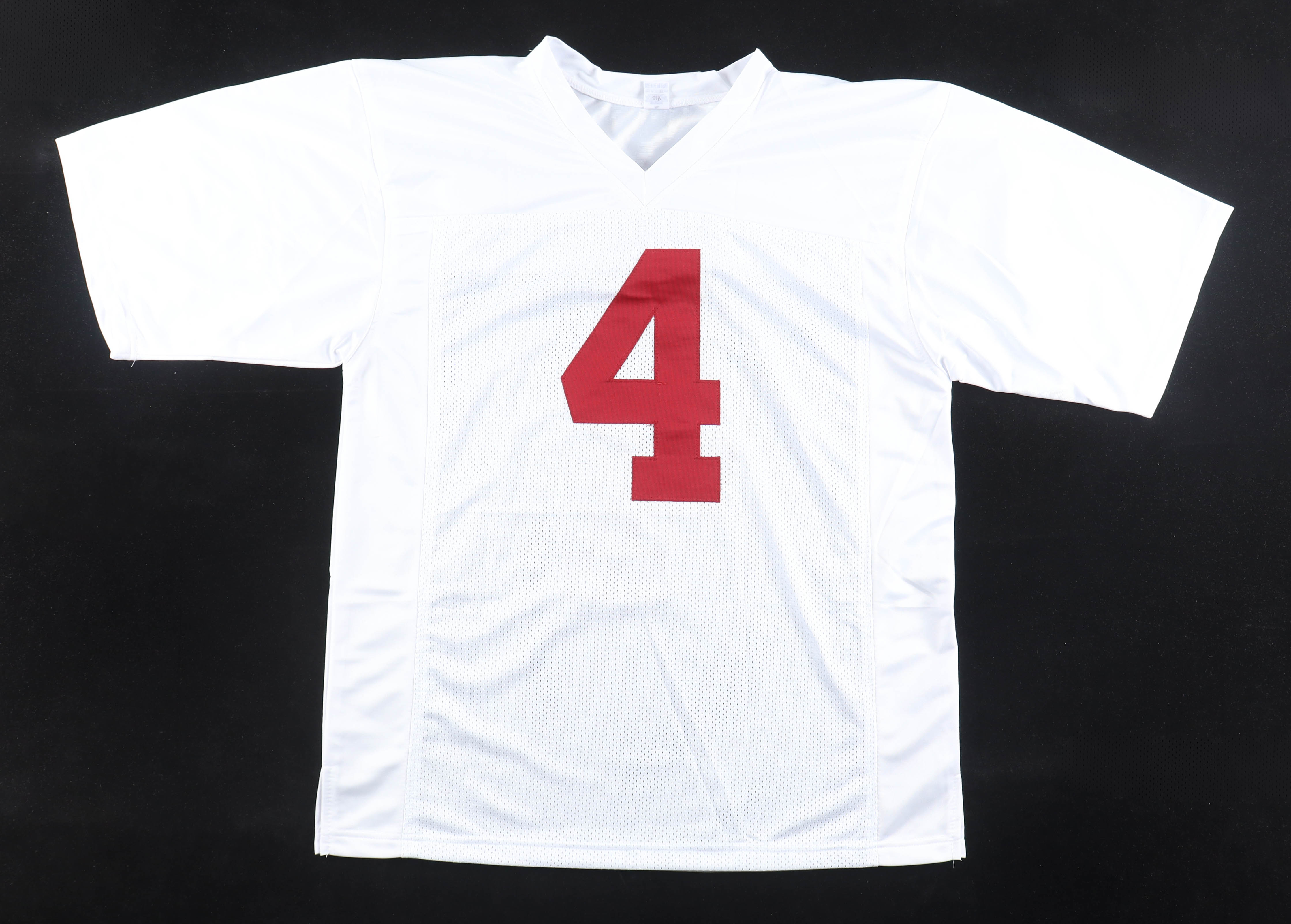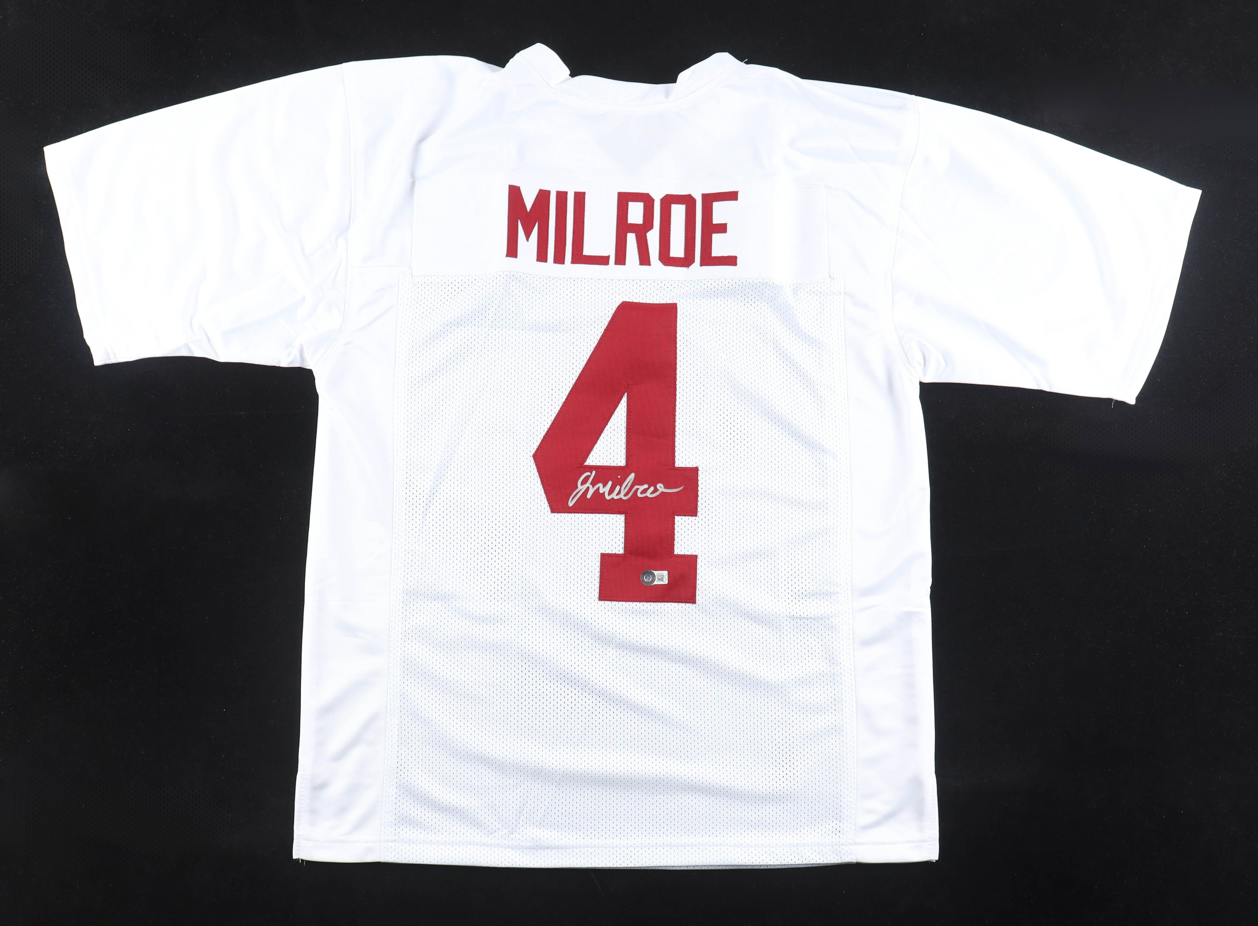 Custom jersey with everything sewn on, size XL. Hand-signed by Jalen Milroe.