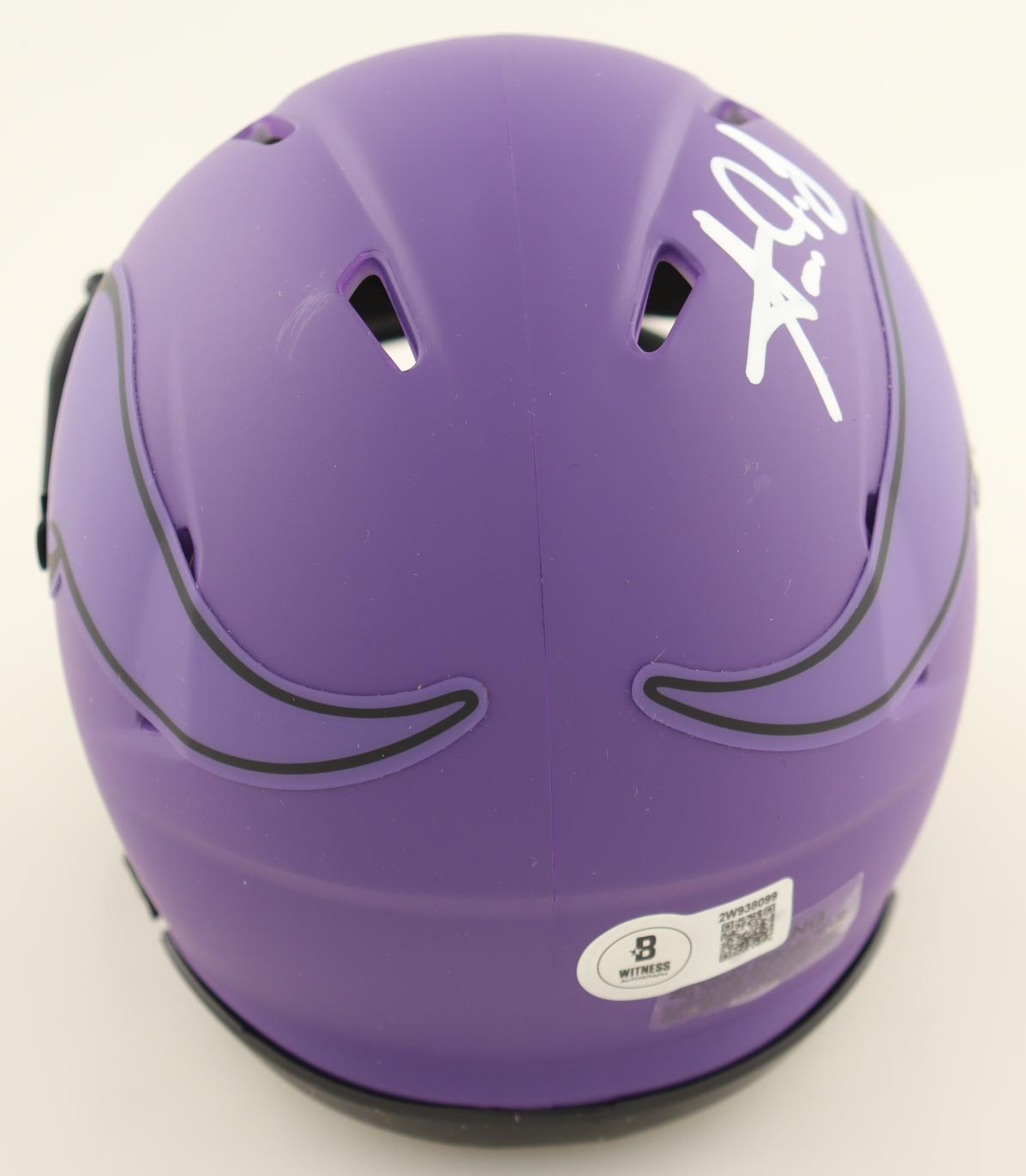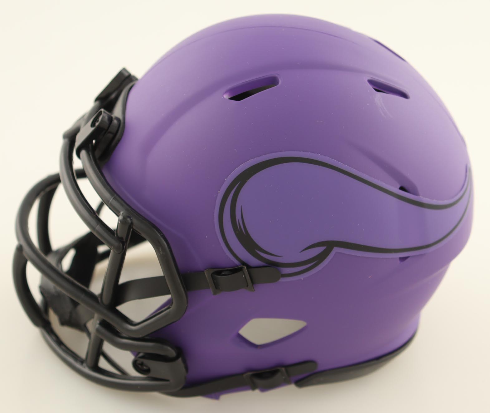 Riddell Minnesota Vikings Rave Alternate speed mini helmet. Hand-signed by Aaron Jones. Please note, logo has been scuffed. See photos for more details.