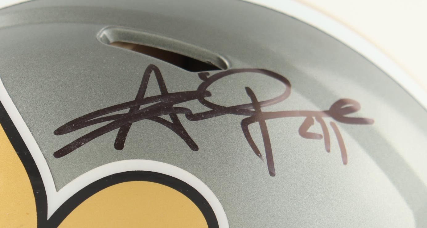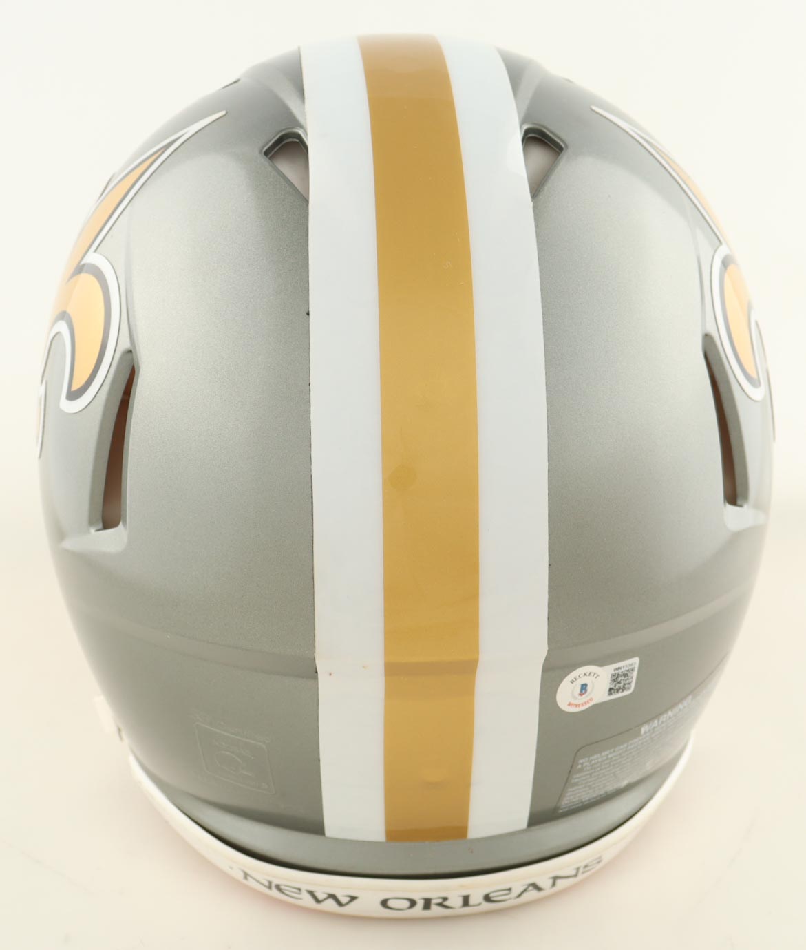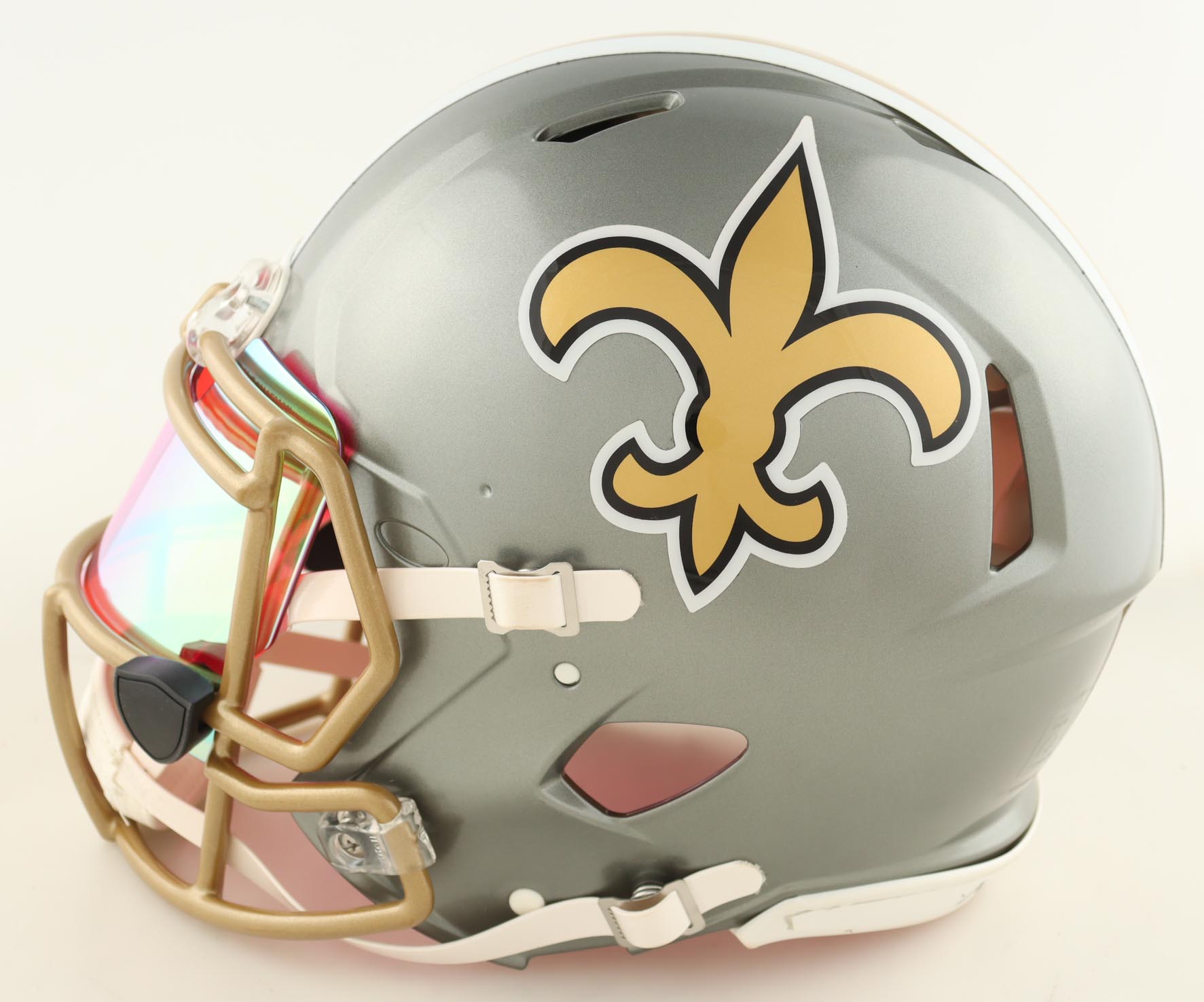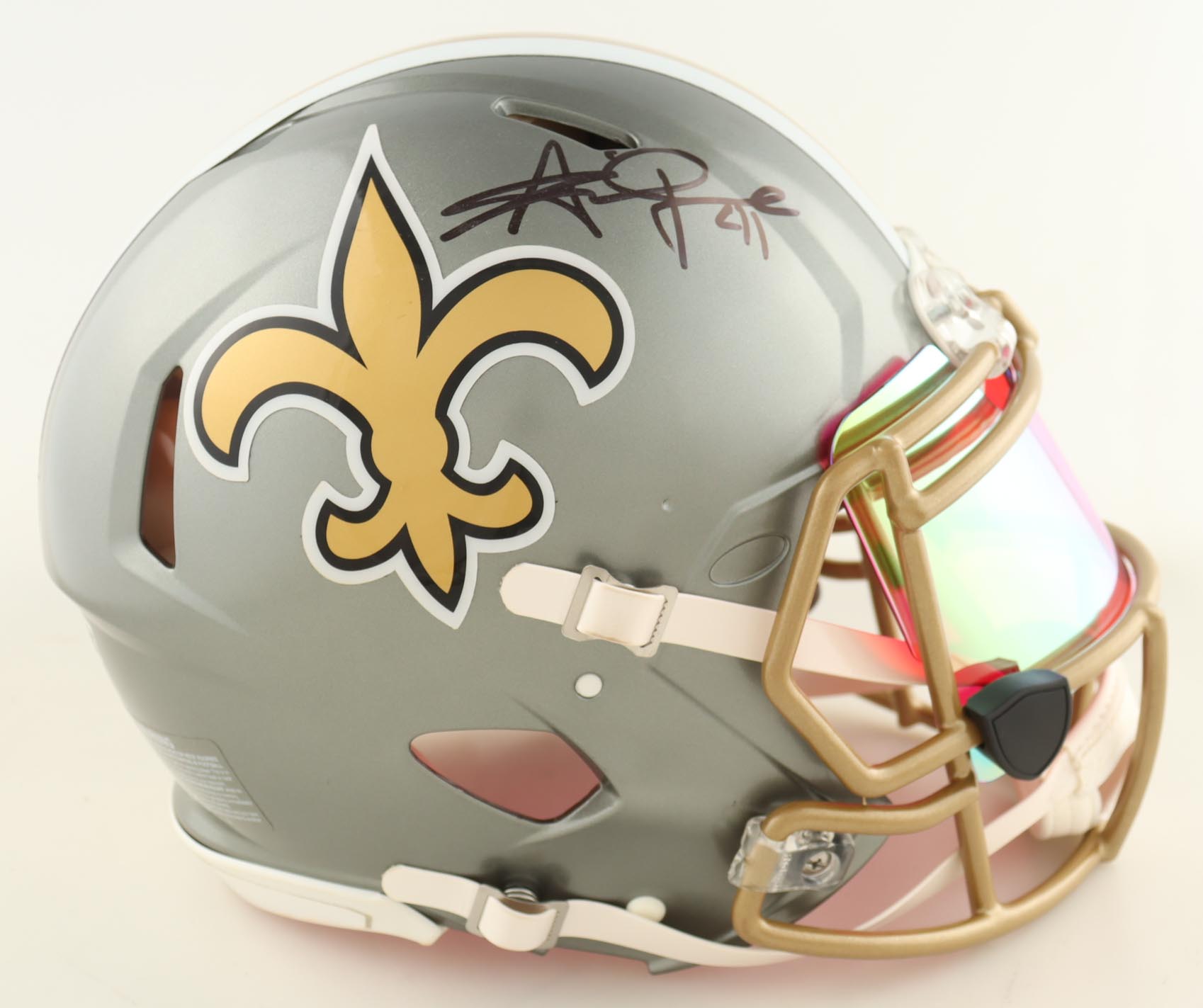 Riddell New Orleans Saints Full-Size Authentic On-Field Flash Alternate Speed Helmet. Hand-signed by Alvin Kamara.