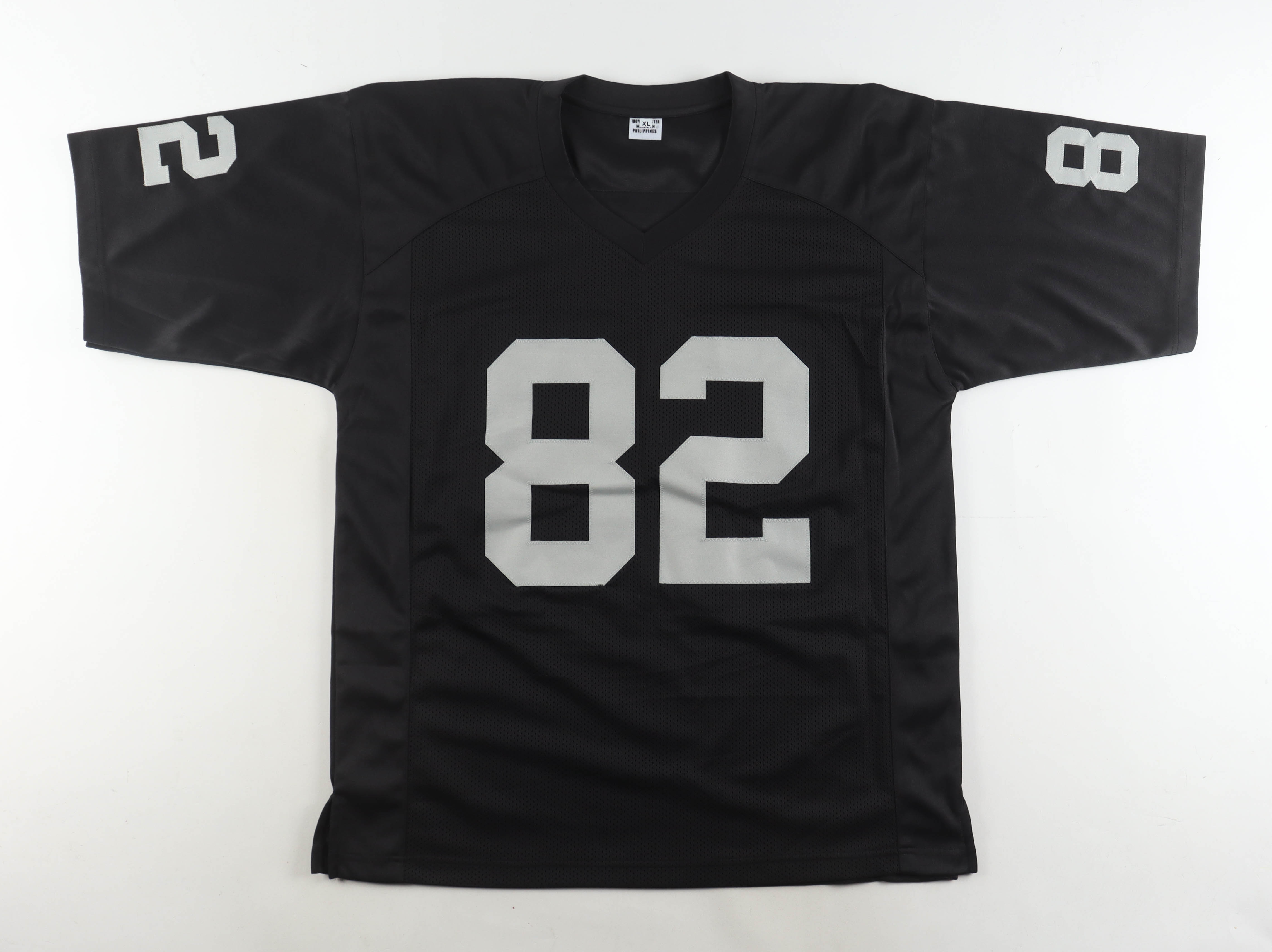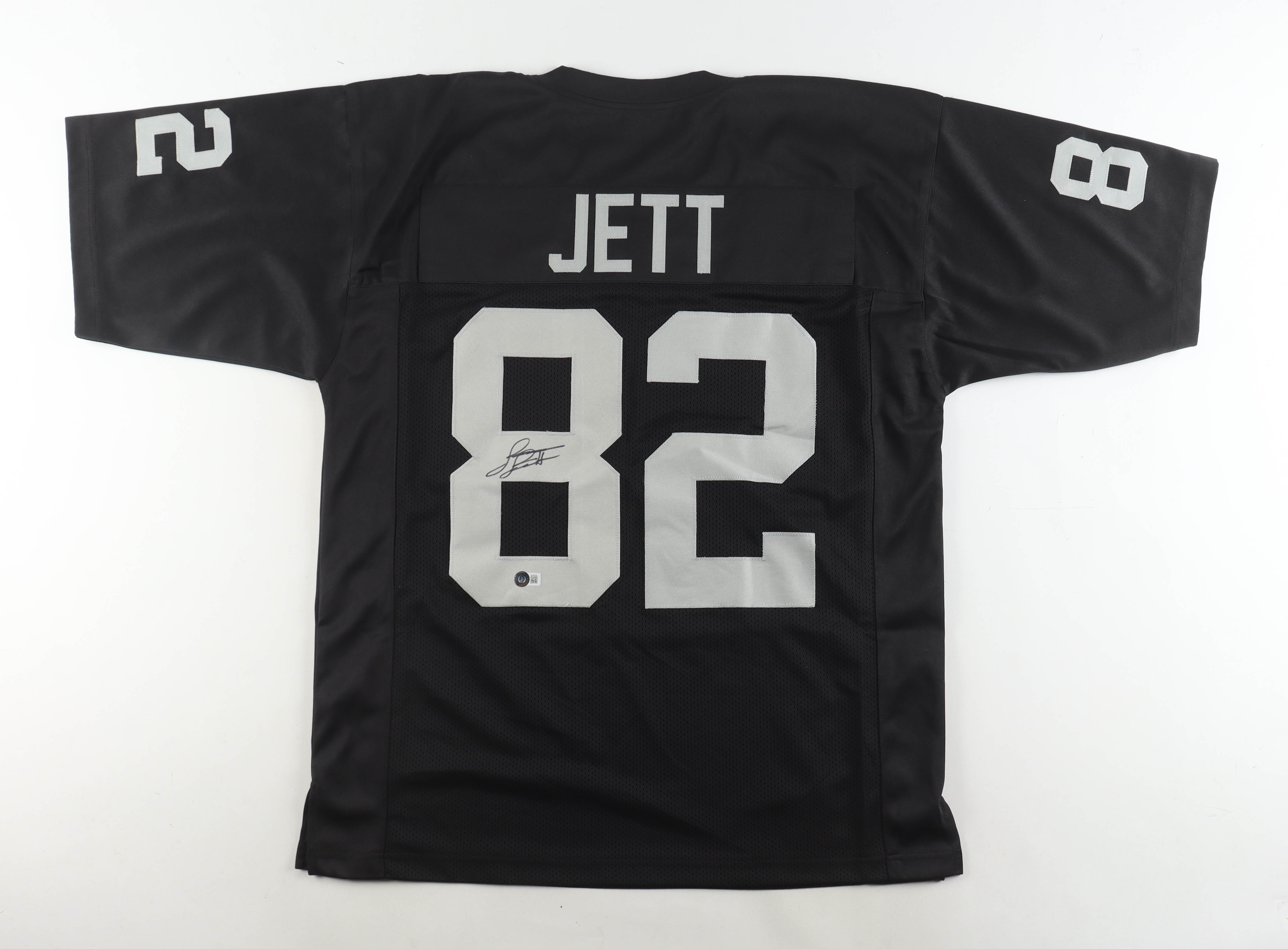 Custom jersey with everything sewn on, size XL. Hand-signed by James Jett.