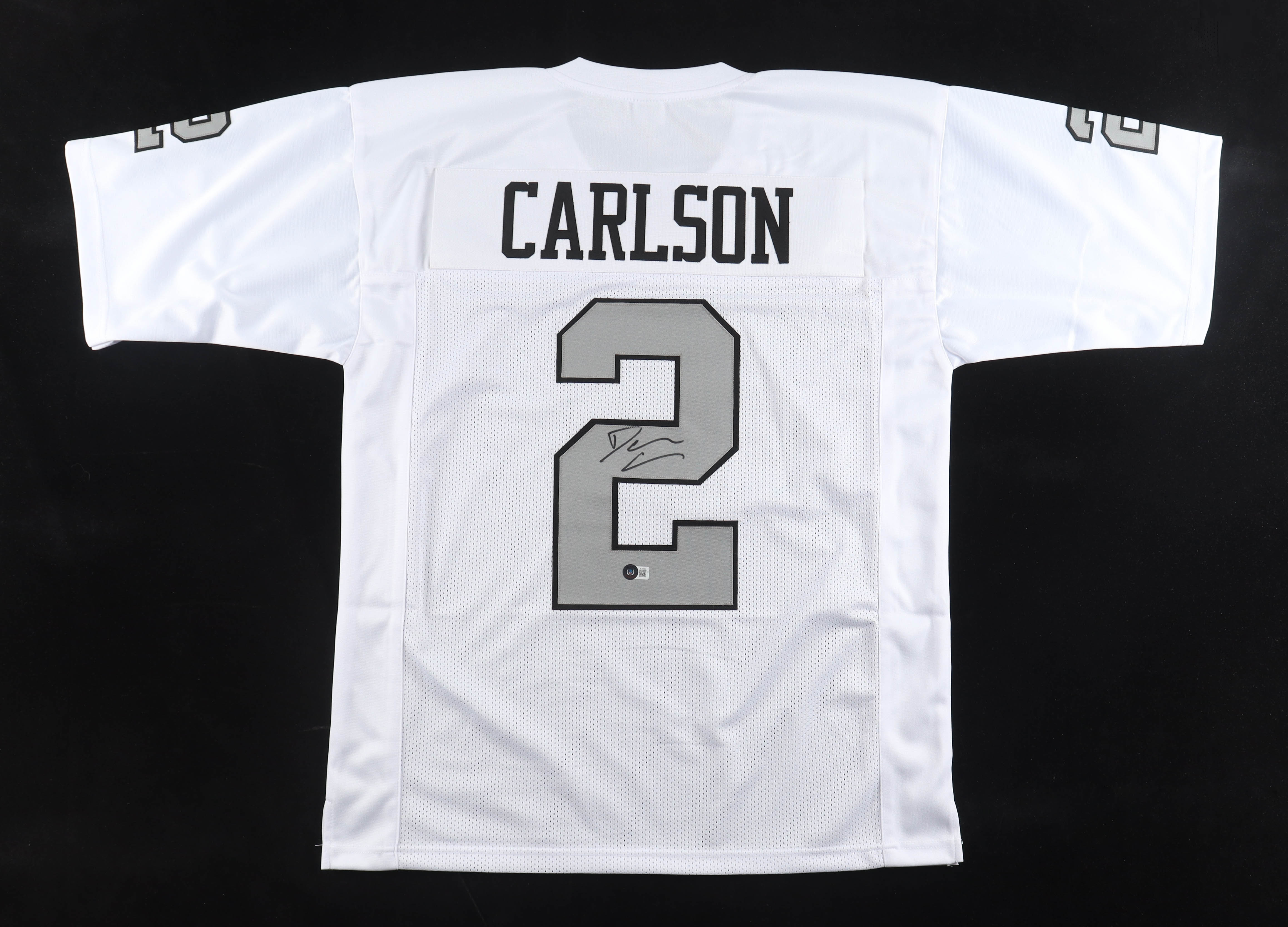 Custom jersey with everything sewn on, size XL. Hand-signed by Daniel Carlson.