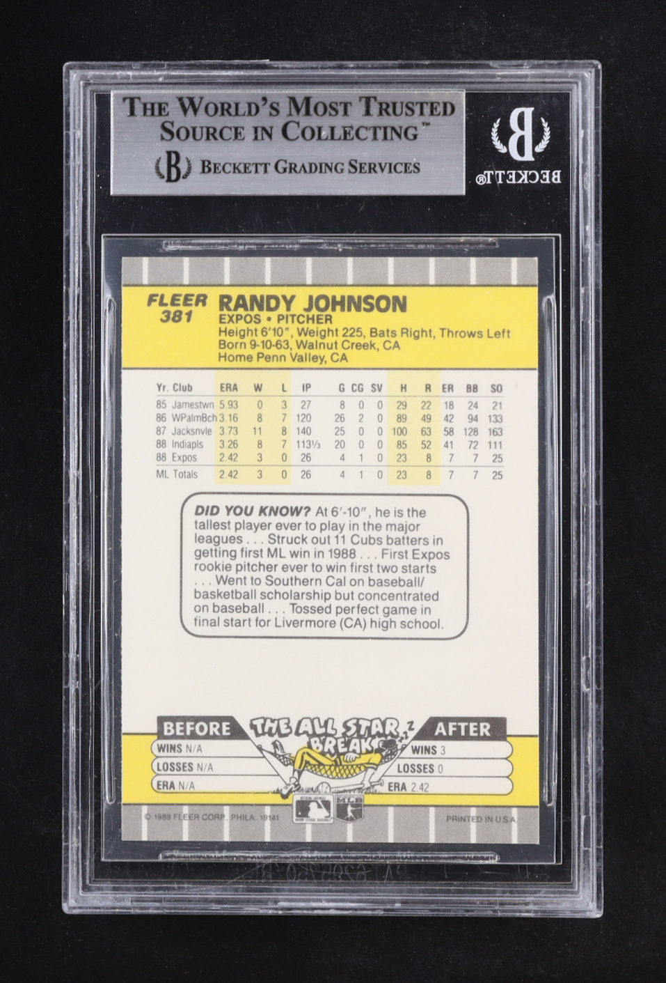 Randy Johnson 1989 Fleer #381 RC (BGS 8.5)