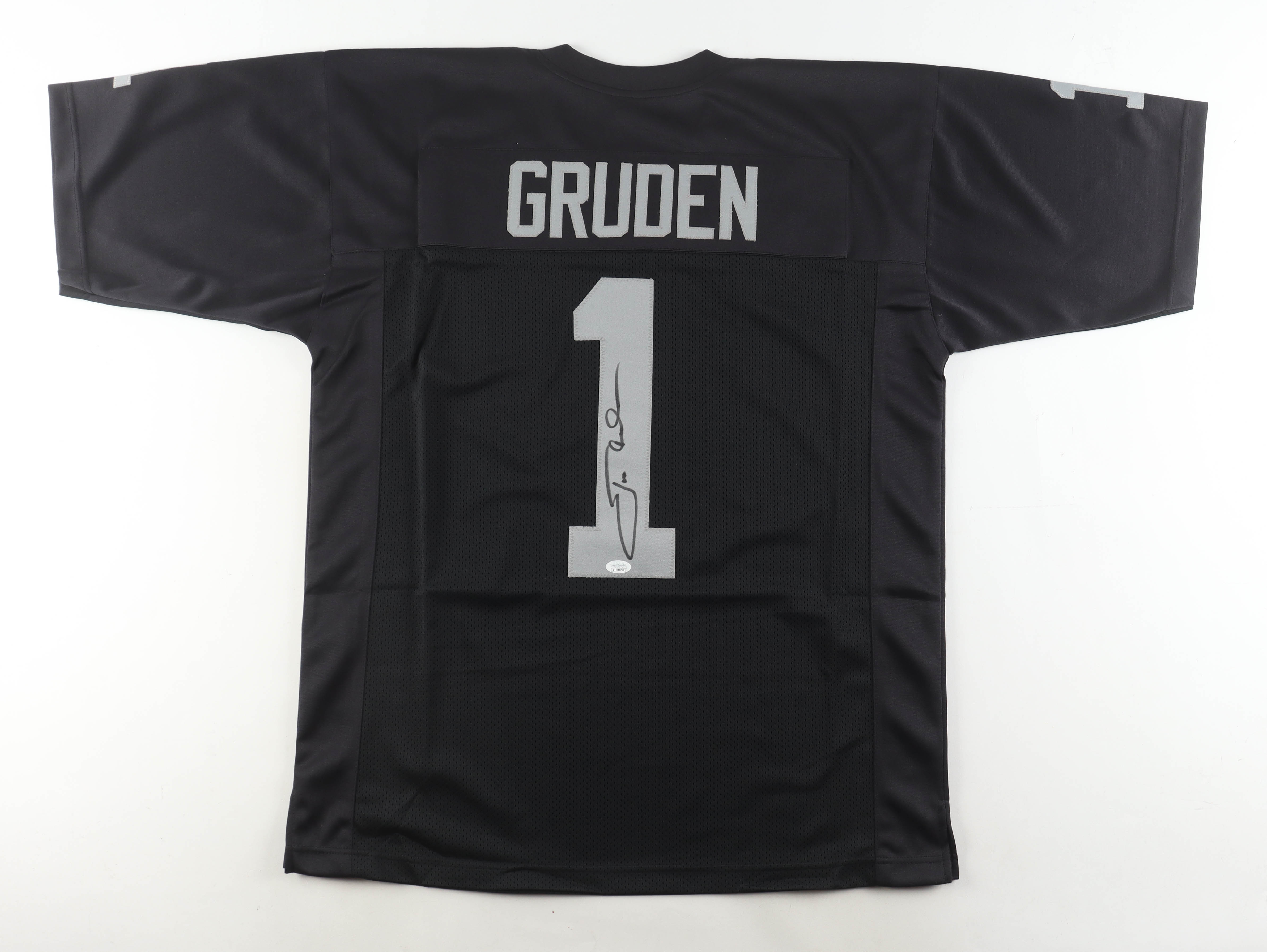 Custom jersey with everything sewn on, size XL. Hand-signed by Jon Gruden.