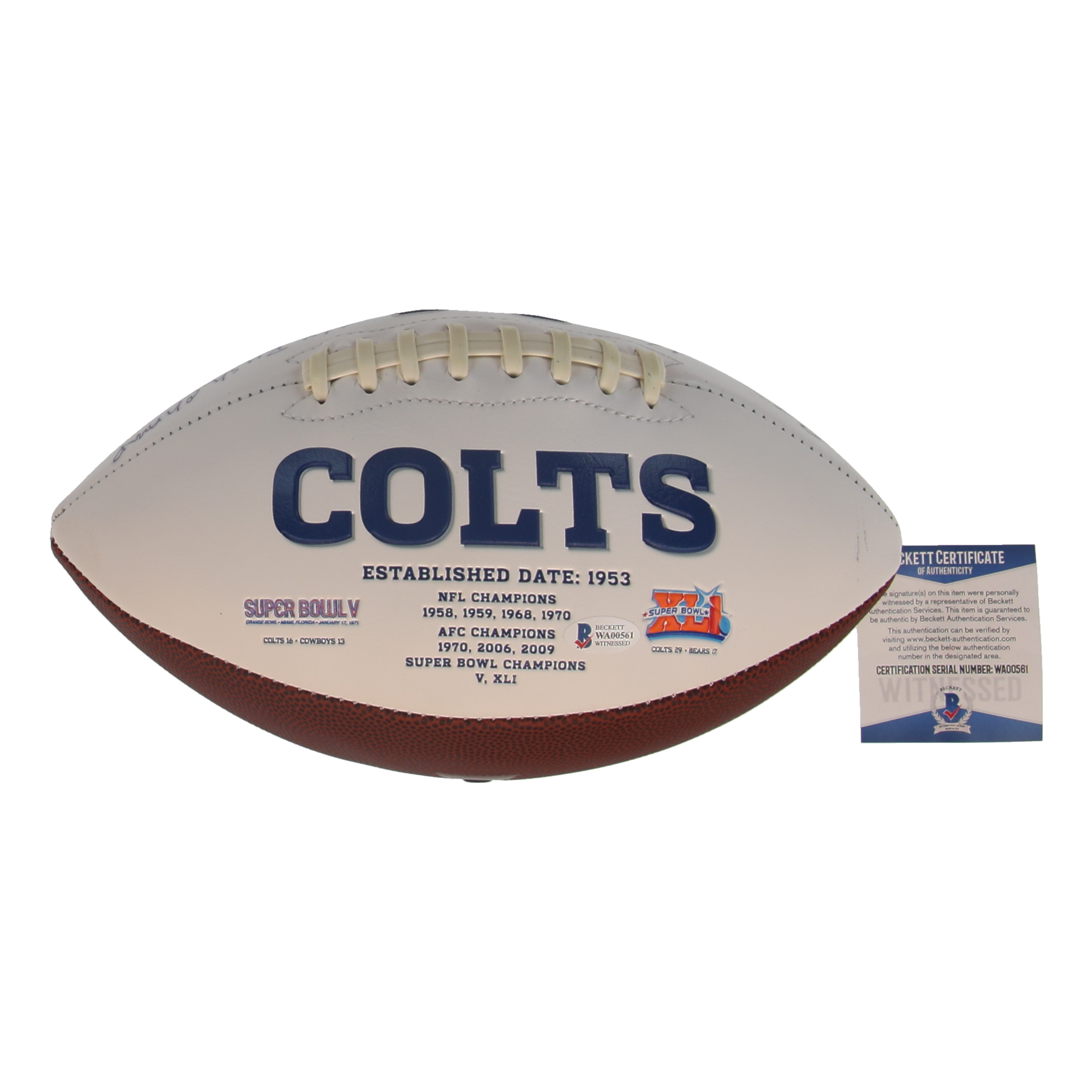 Indianapolis Colts Logo White Panel Football has been hand-signed and inscribed by Eric Dickerson (Indianapolis Colts).