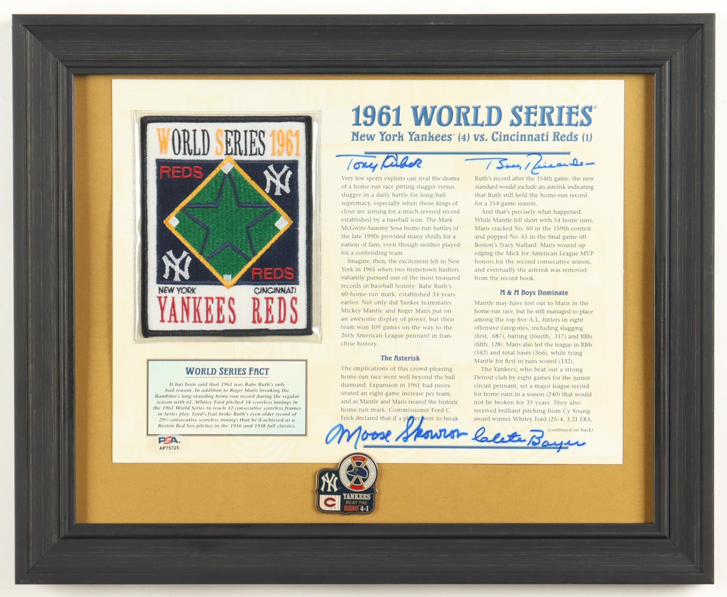 1961 World Series Custom Framed Commemorative Patch Display Signed by (4) with Moose Skowron, Tony Kubek, Bobby Richardson & Clete Boyer (PSA)