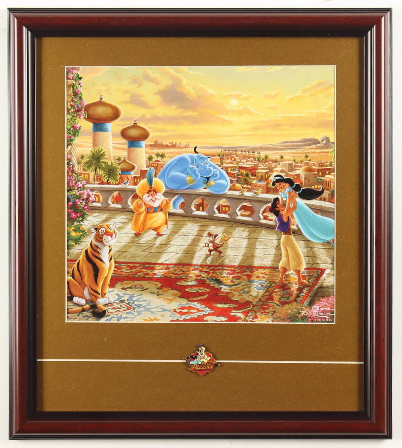 Thomas Kinkade "Aladdin" Custom Framed Print Display with Magic Carpet Ride Disney Pin