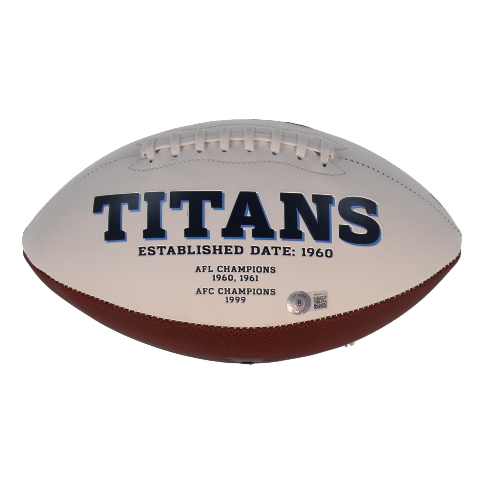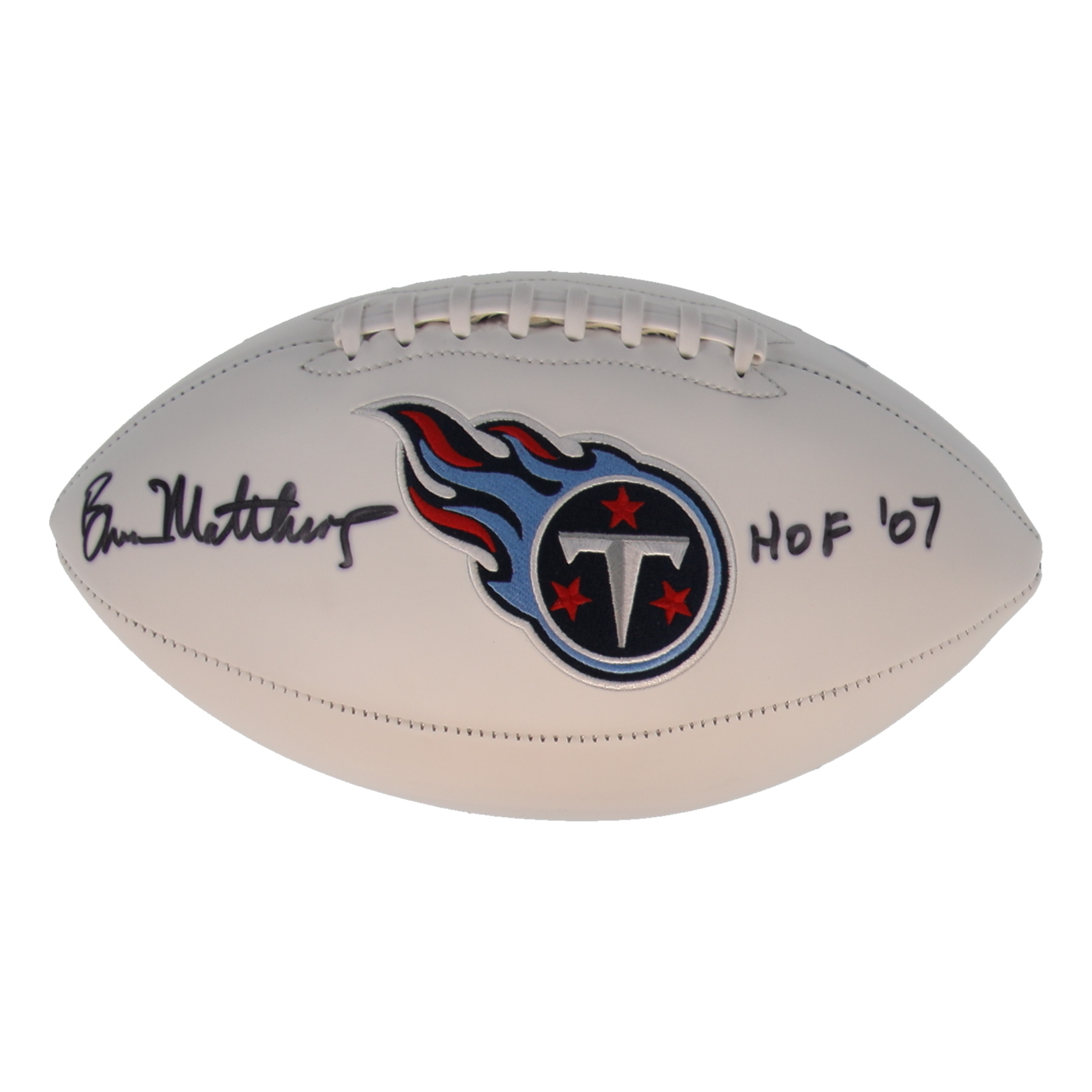 Tennessee Titans logo football has been hand-signed and inscribed by Bruce Matthews (HOF)