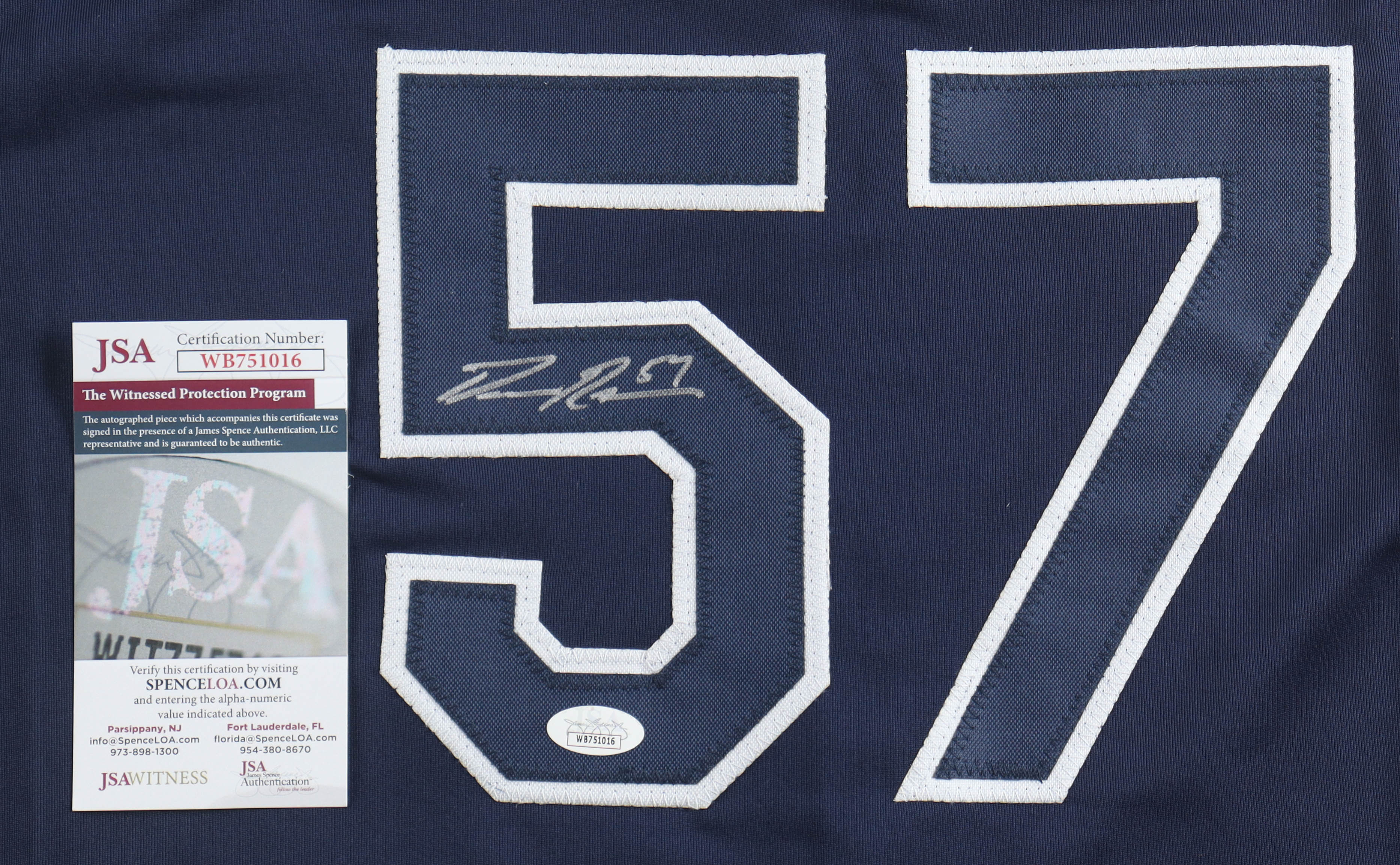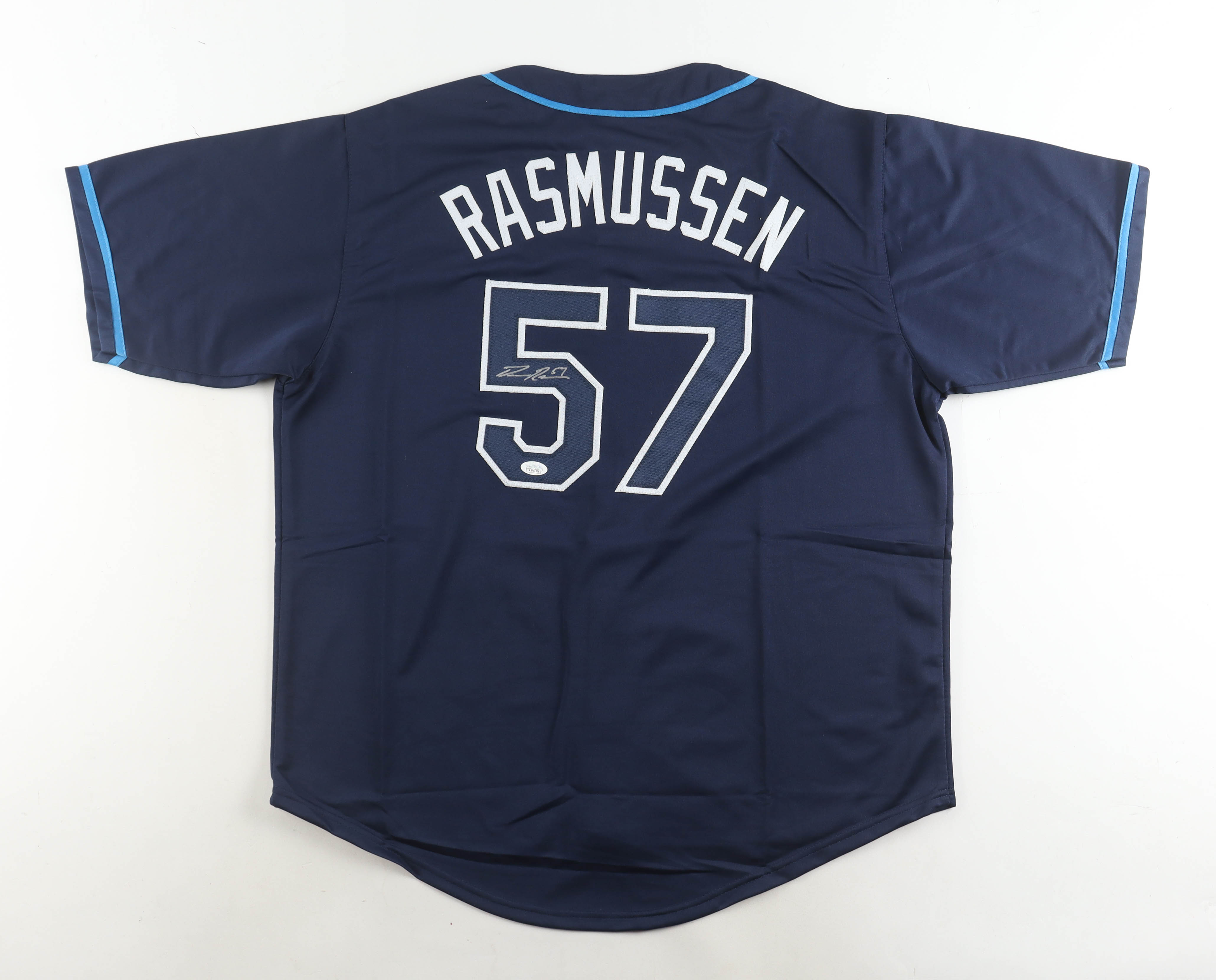 Custom jersey with everything sewn on, size XL. Hand-signed by Drew Rasmussen.