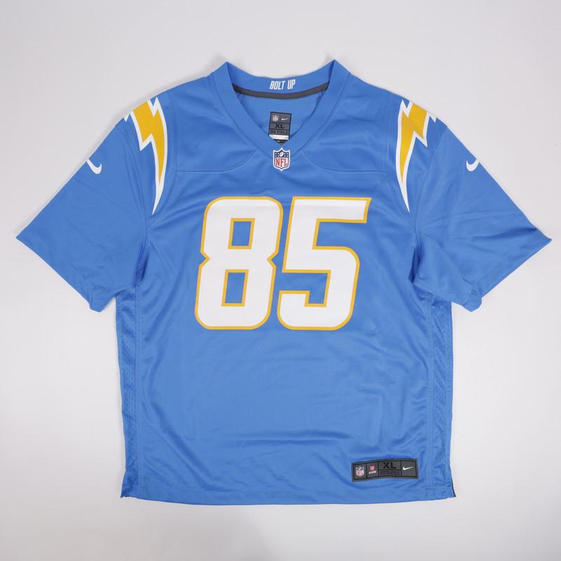 Nike jersey with everything pressed on, size XL. Hand-signed and inscribed by Antonio Gates (San Diego Chargers, HOF).