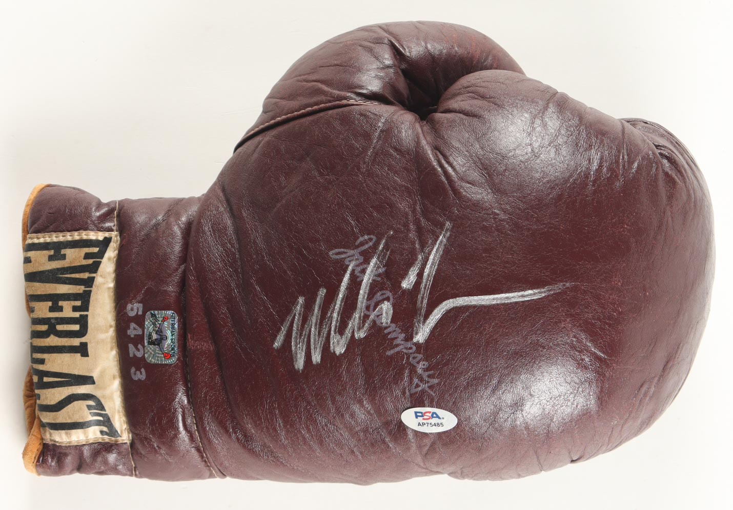 Mike Tyson Signed Vintage Everlast 'Jack Dempsey' Boxing Glove in Wood Display Case (Tyson & PSA)