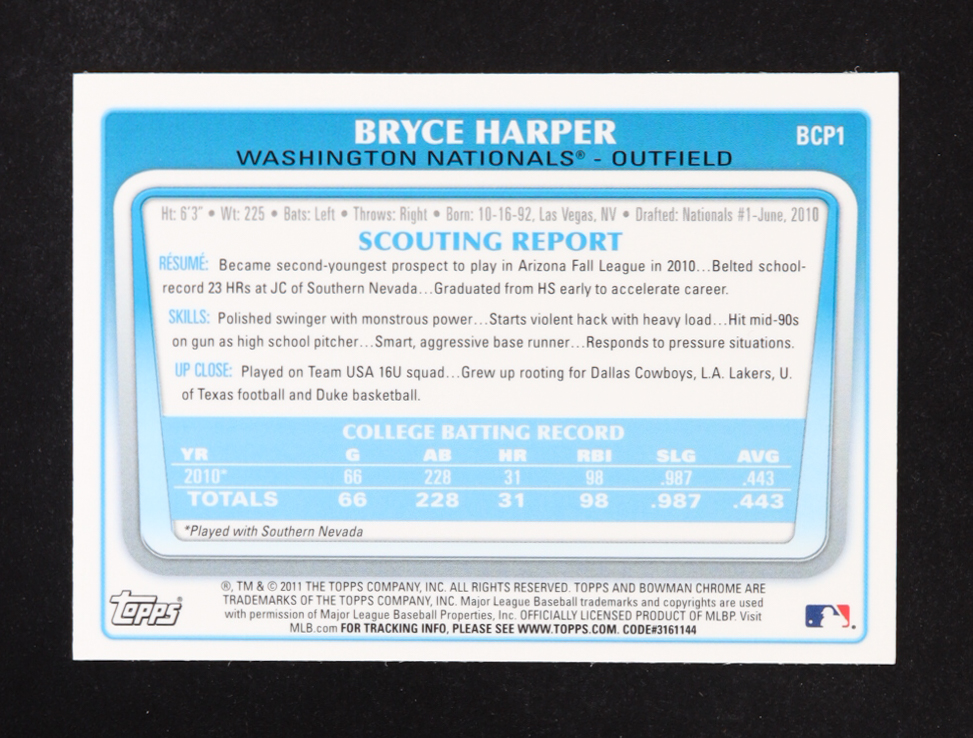 Bryce Harper 2011 Bowman Chrome Prospects #BCP1 RC