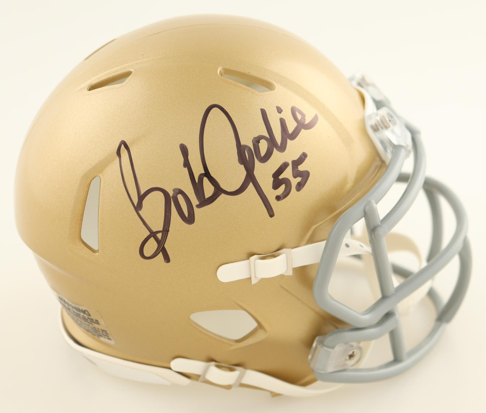 Riddell Notre Dame Fighting Irish Speed mini helmet has been hand-signed by Bob Golic.