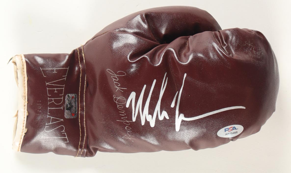 Mike Tyson Signed Everlast 'Jack Dempsey' Boxing Glove with Wood Display Case (Tyson & PSA)