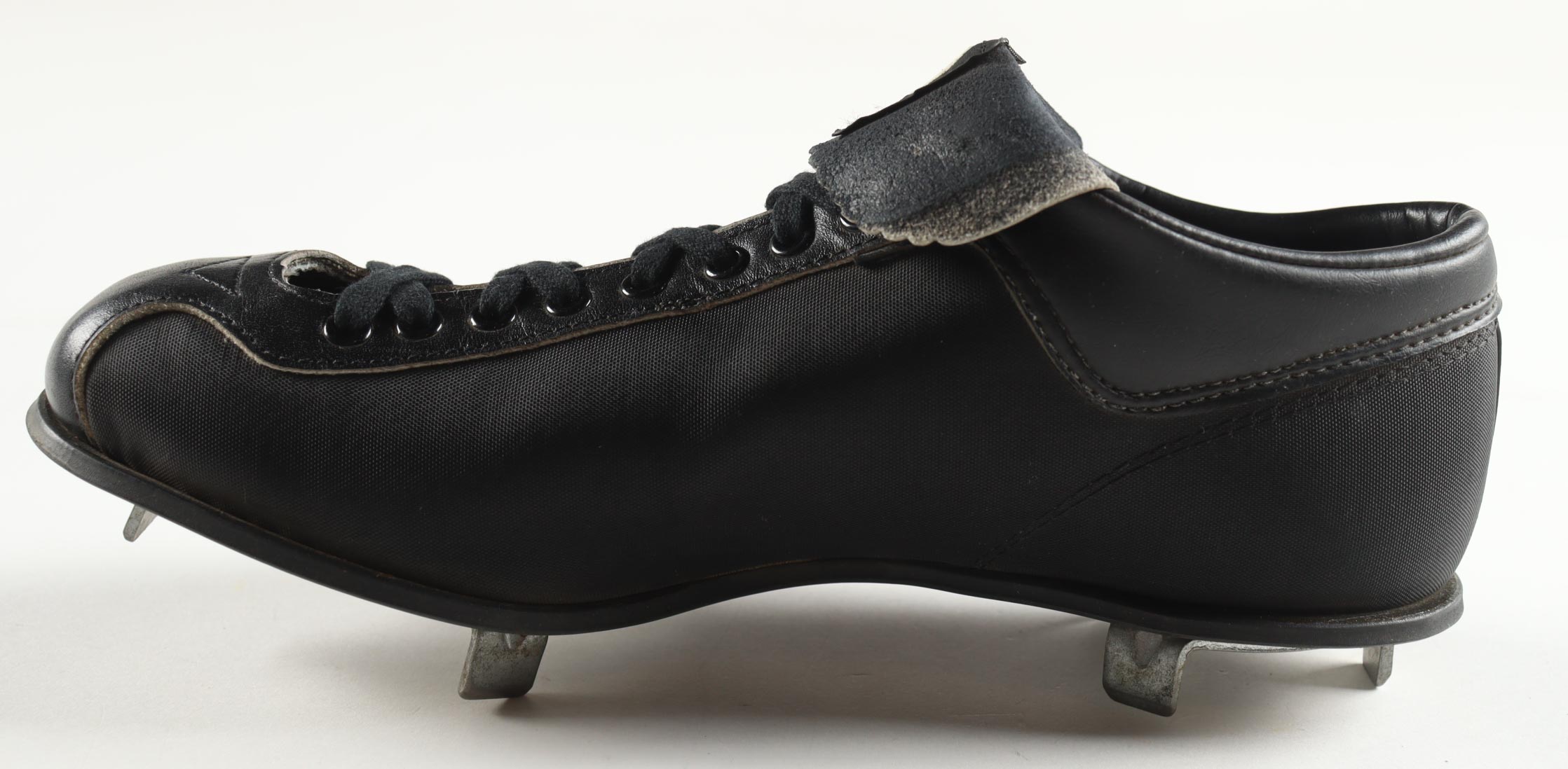 Vintage leather baseball cleat, right cleat has been hand-signed by Nolan Ryan (New York Mets, HOF). Display case included as shown. See photos for condition of cleats. Please note that the display case shows signs of damage.