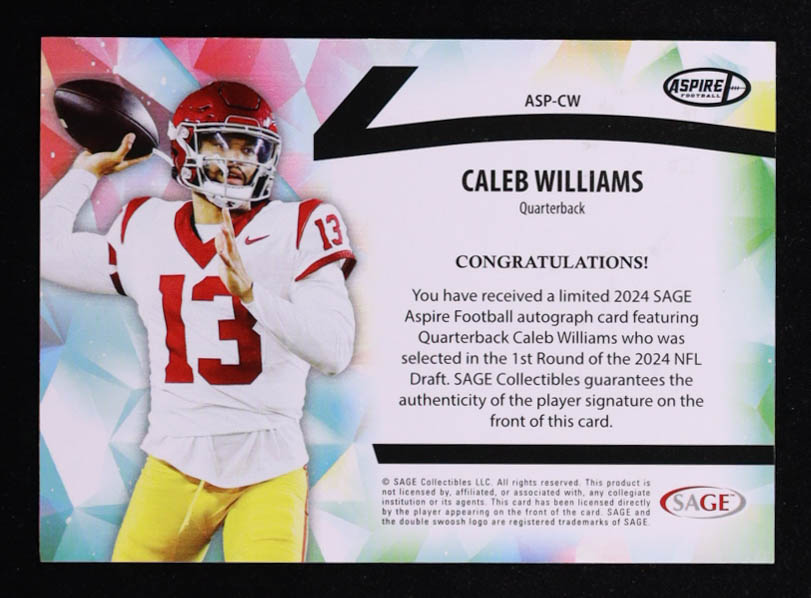 Caleb Williams 2024 Sage Aspire Autographed Pink Foil #ASPCW RC