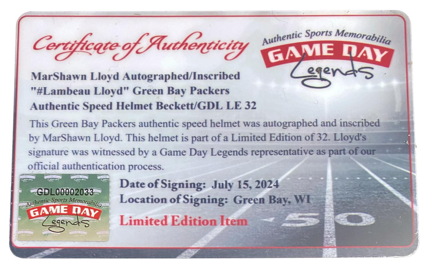 MarShawn Lloyd Signed LE Packers Full-Size Authentic On-Field Speed Helmet Inscribed "#Lambeau Lloyd" (Beckett & GameDay Legends)