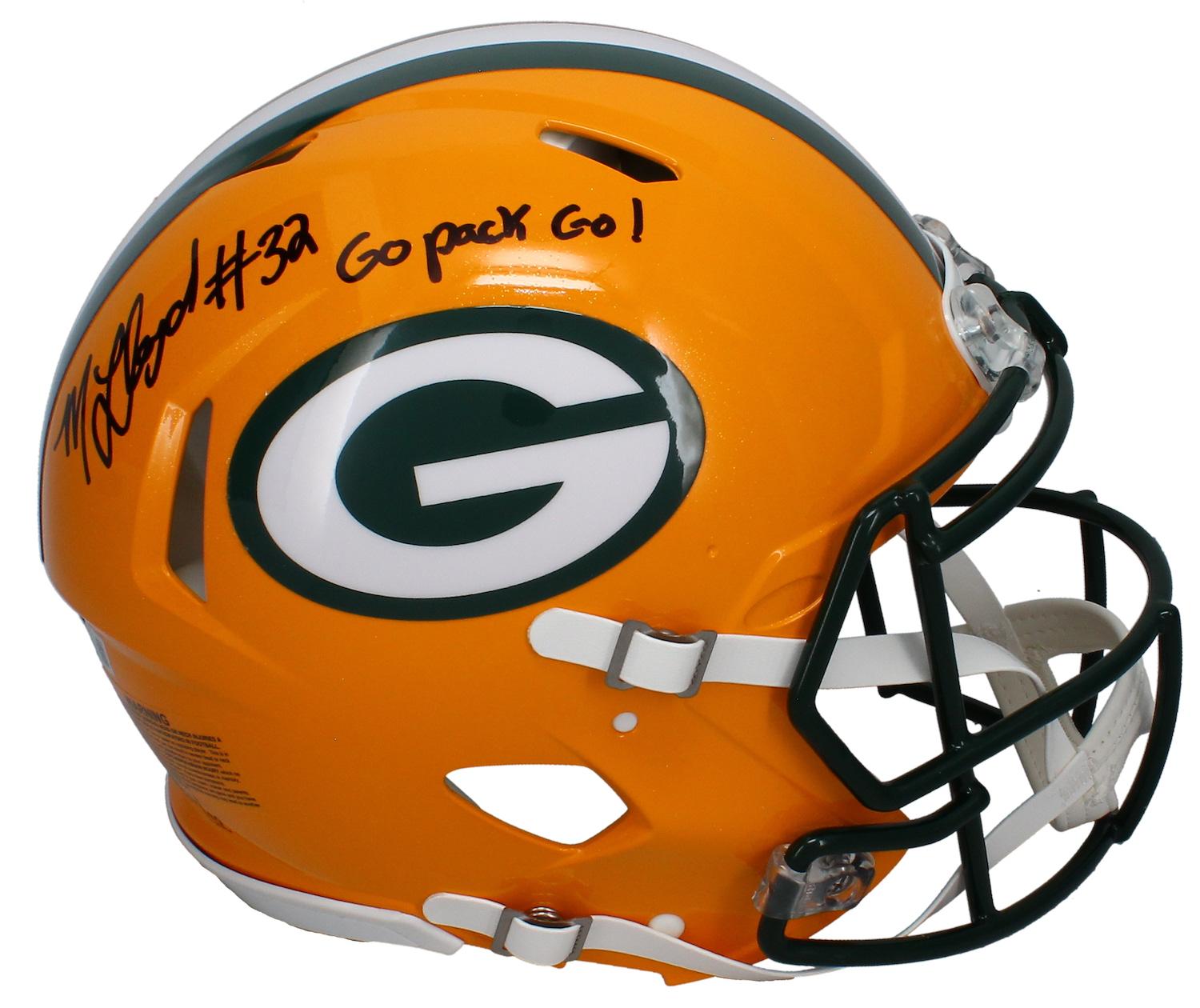 Riddell Green Bay Packers full-size authentic on-field speed helmet has been hand-signed and inscribed by MarShawn Lloyd. This item is limited edition and has been numbered #1/32.
