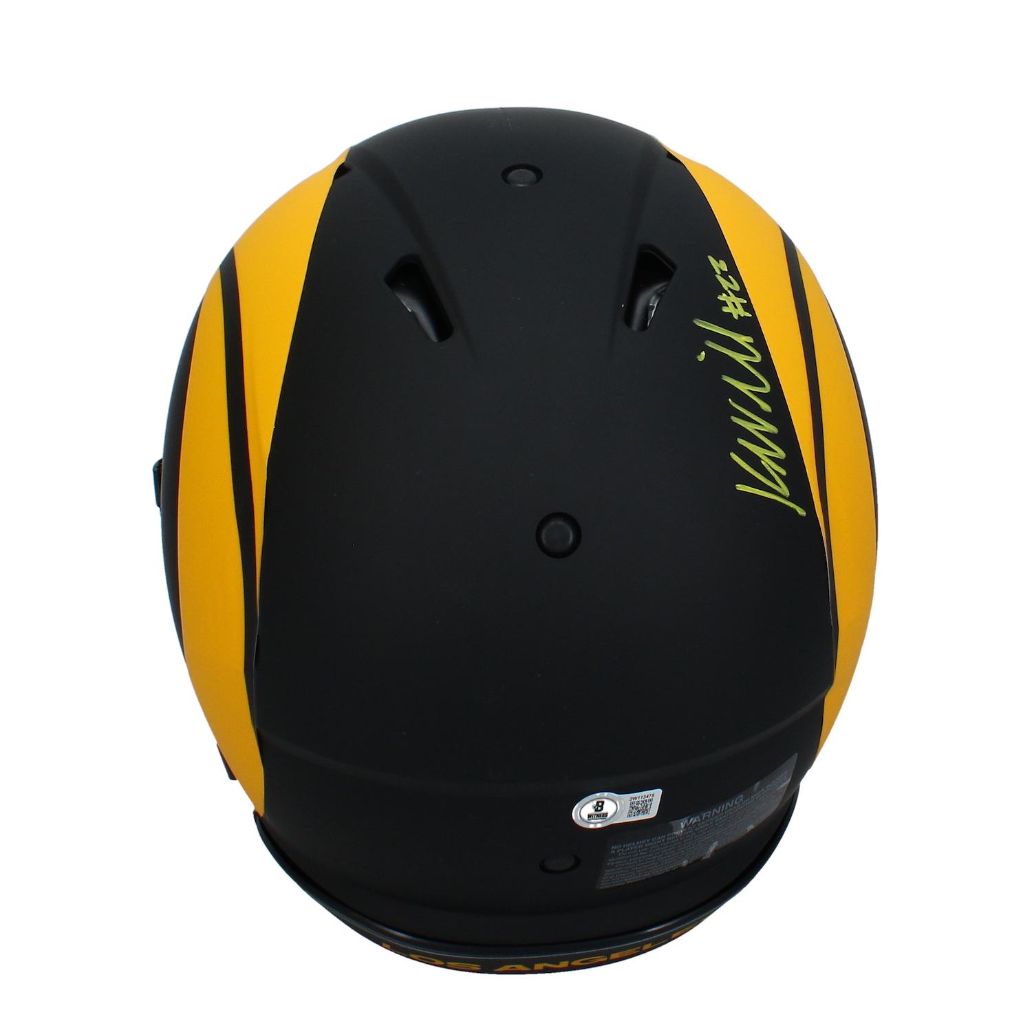 Riddell Los Angeles Rams full-size authentic on-field eclipse alternate speed helmet has been hand-signed by Kyren Williams.