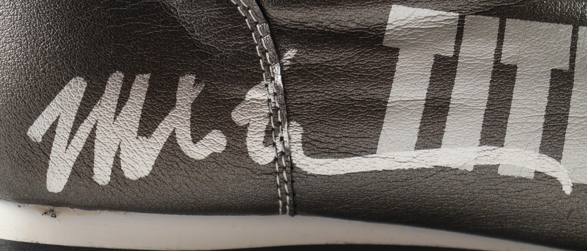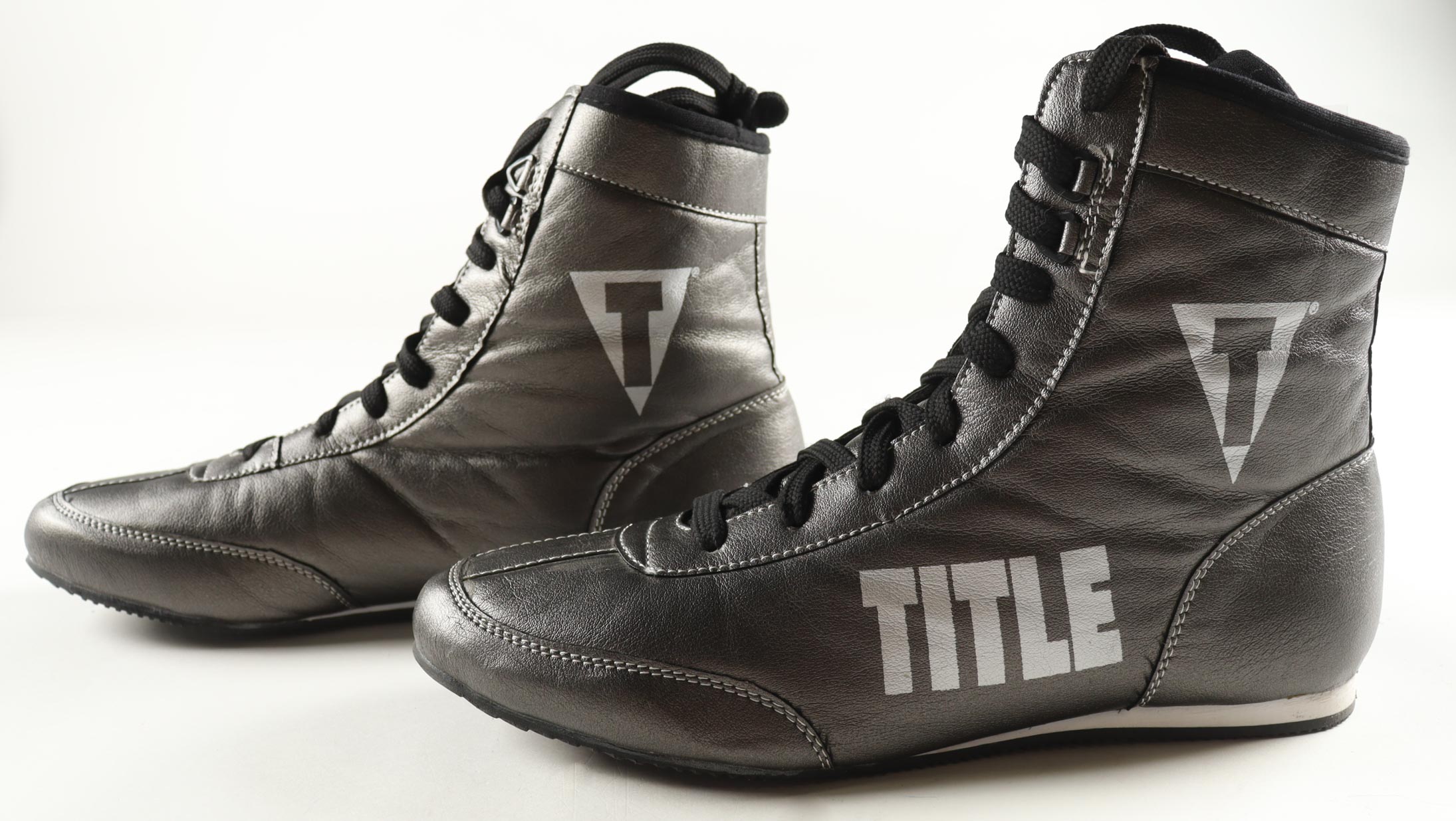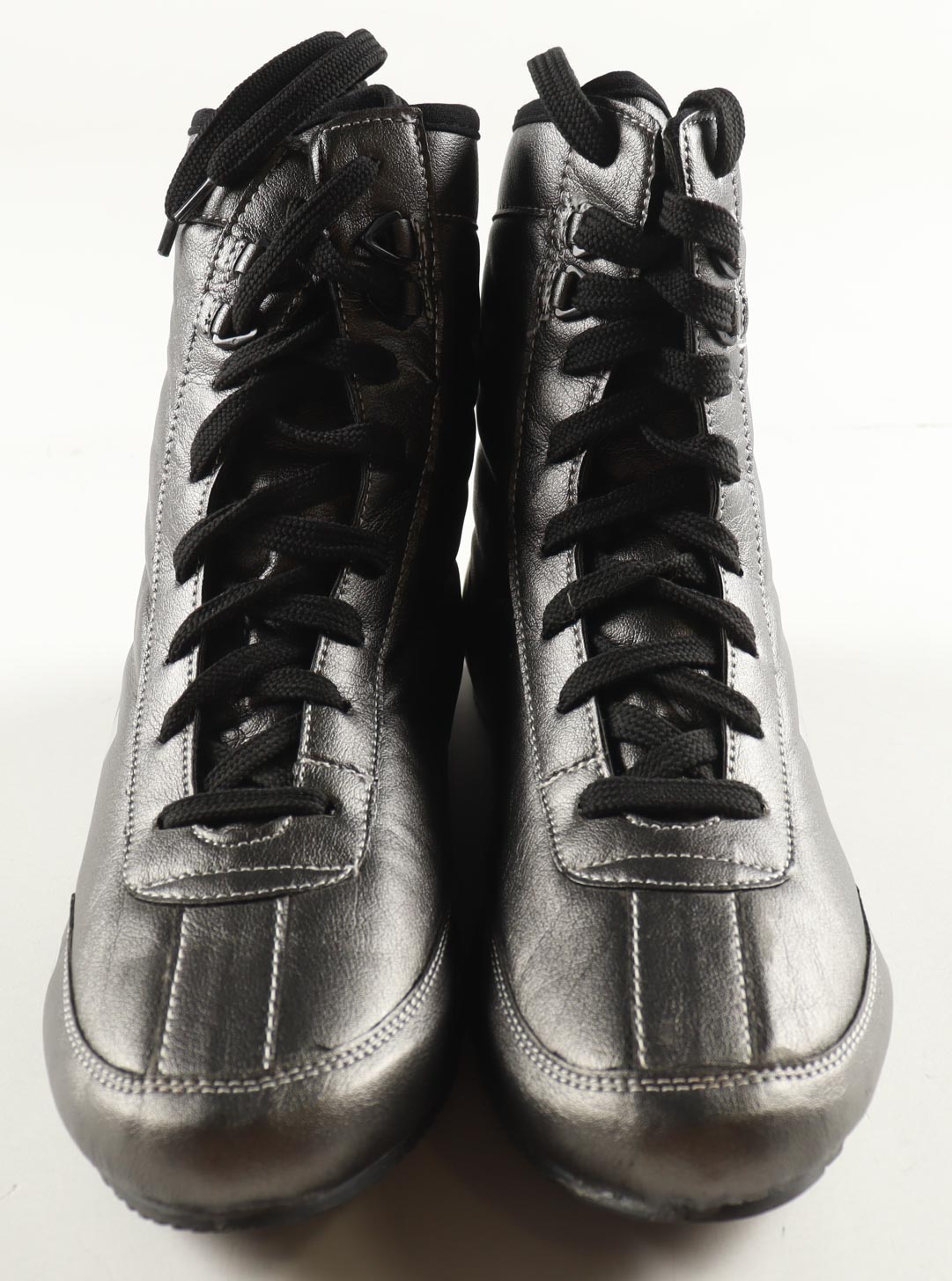 Pair of (2) Title Boxing Boots, size 11. The right shoe has been hand-signed by Mike Tyson (HOF). Please note, the display case is included as shown.