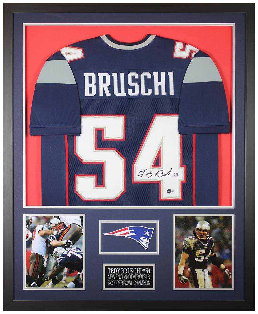 Tedy Bruschi Signed Custom Framed Jersey (Beckett)