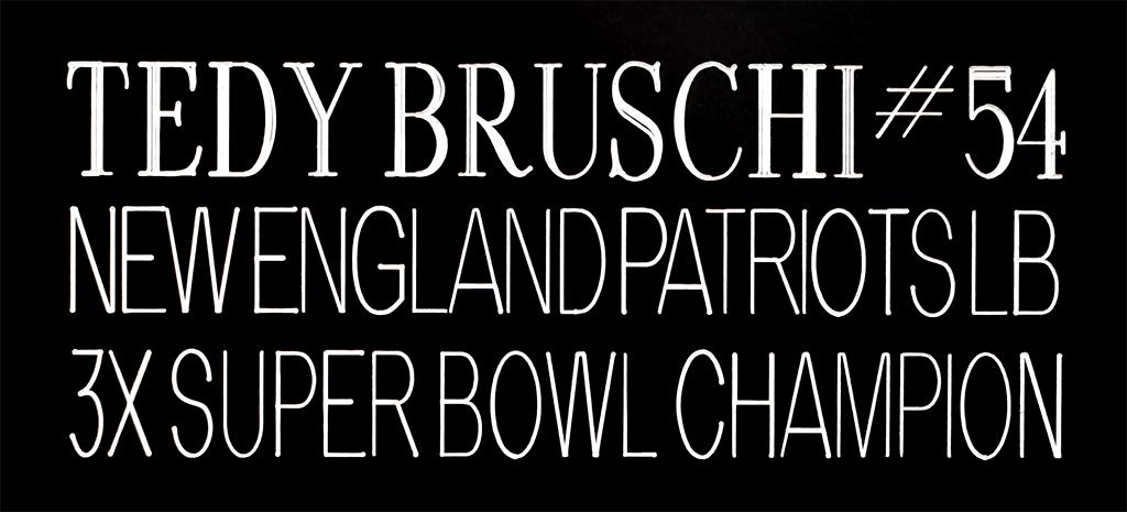 Custom frame measures 35" x 43" in size and features a jersey hand-signed by Tedy Bruschi.