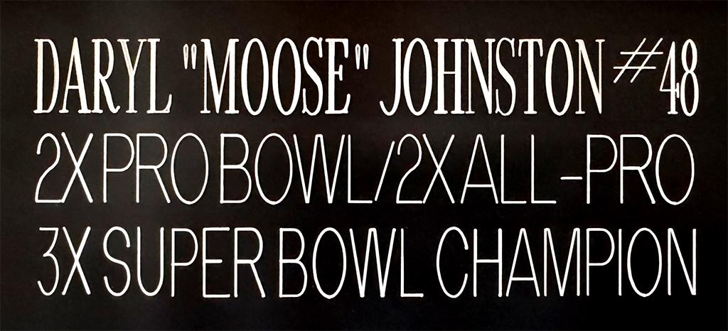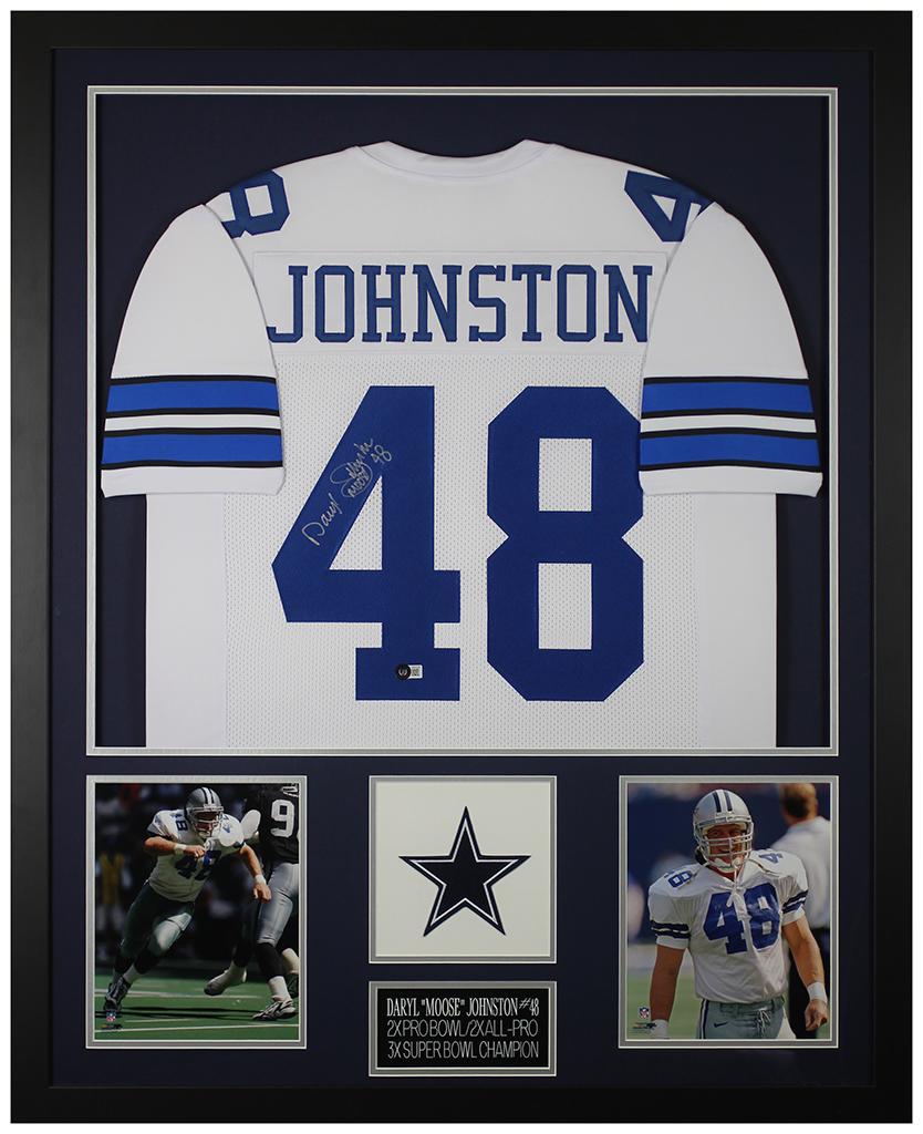 Custom frame measures 35" x 43" in size and features a jersey hand-signed by Daryl Johnston.
