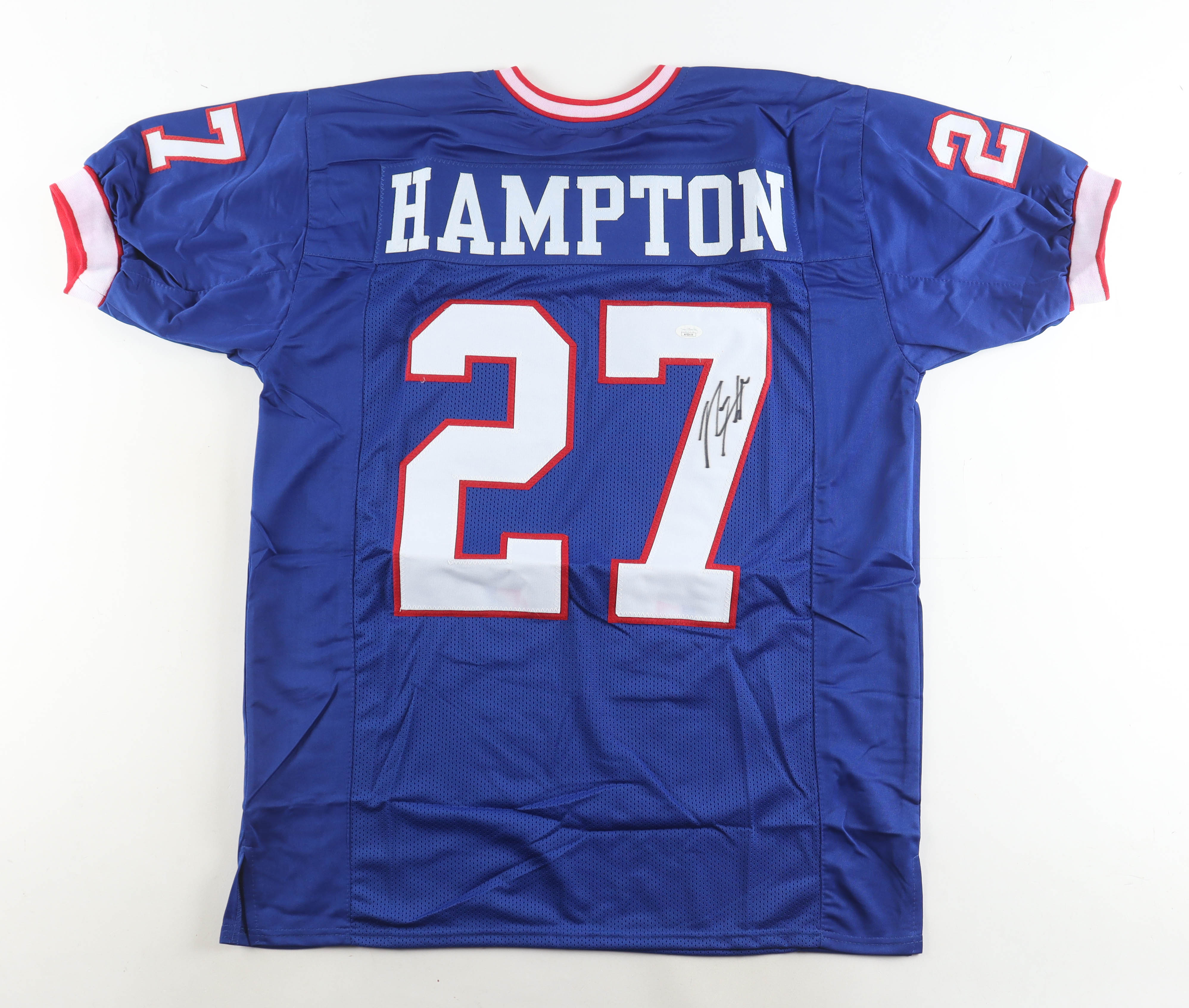 Custom jersey with everything sewn on, size XL. Hand-signed by Rodney Hampton.