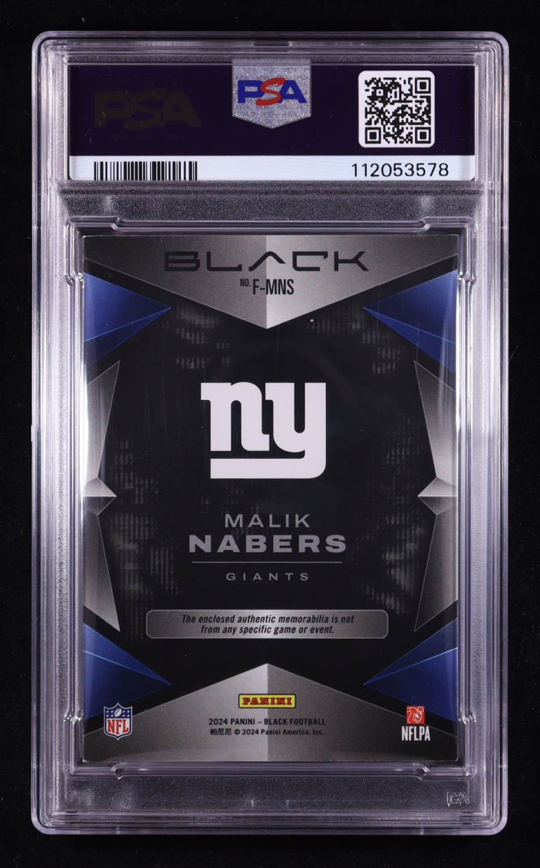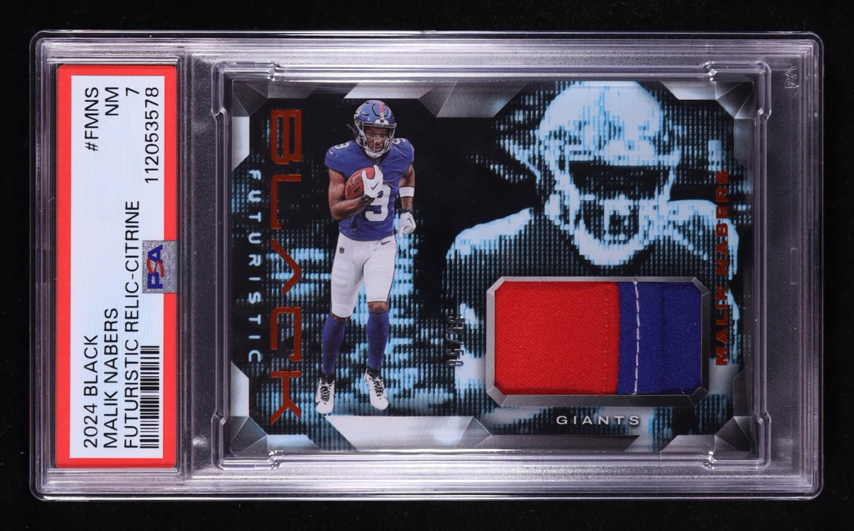 Malik Nabers 2024 Panini Black Futuristic Jerseys Citrine #5 RC #36/50 (PSA 7)