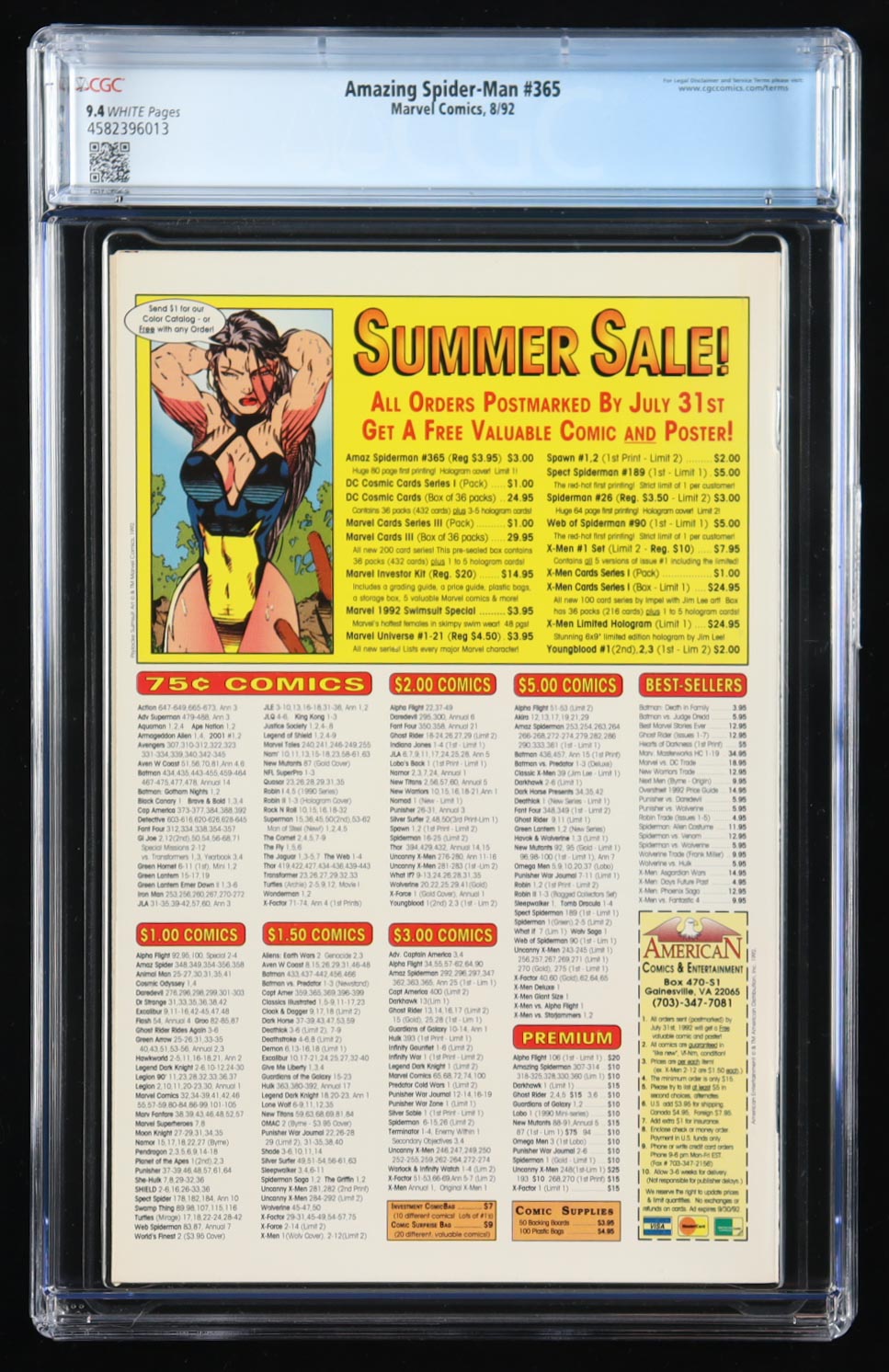 1992 "The Amazing Spider-Man" Issue #365 Marvel Comic Book (CGC 9.4)