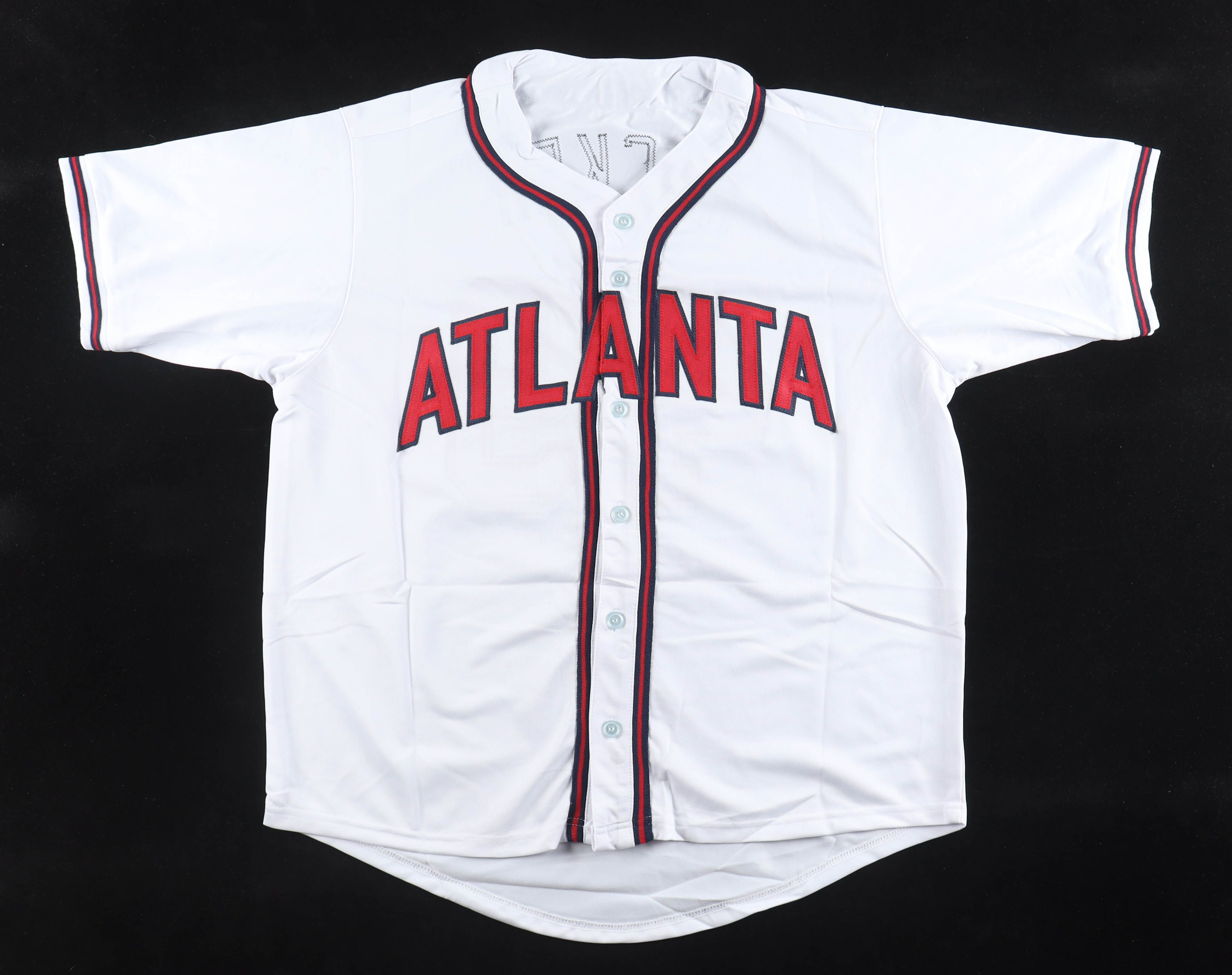 Custom jersey with everything sewn on, size XL. Hand-signed by John Rocker.