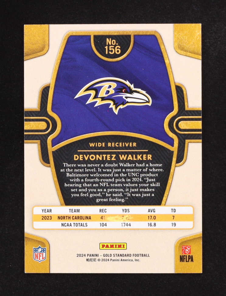 Devontez Walker 2024 Panini Gold Standard White Gold #156 #22/65