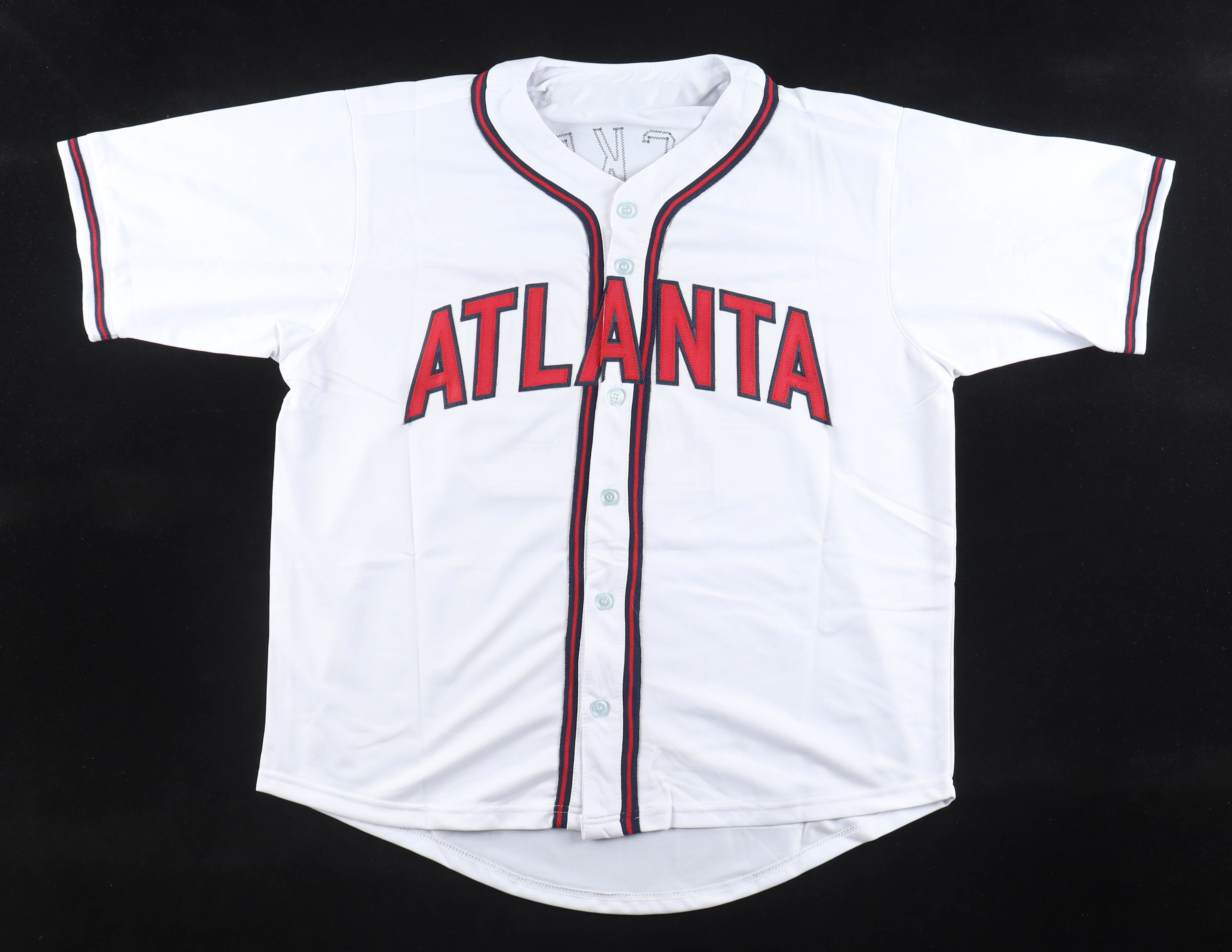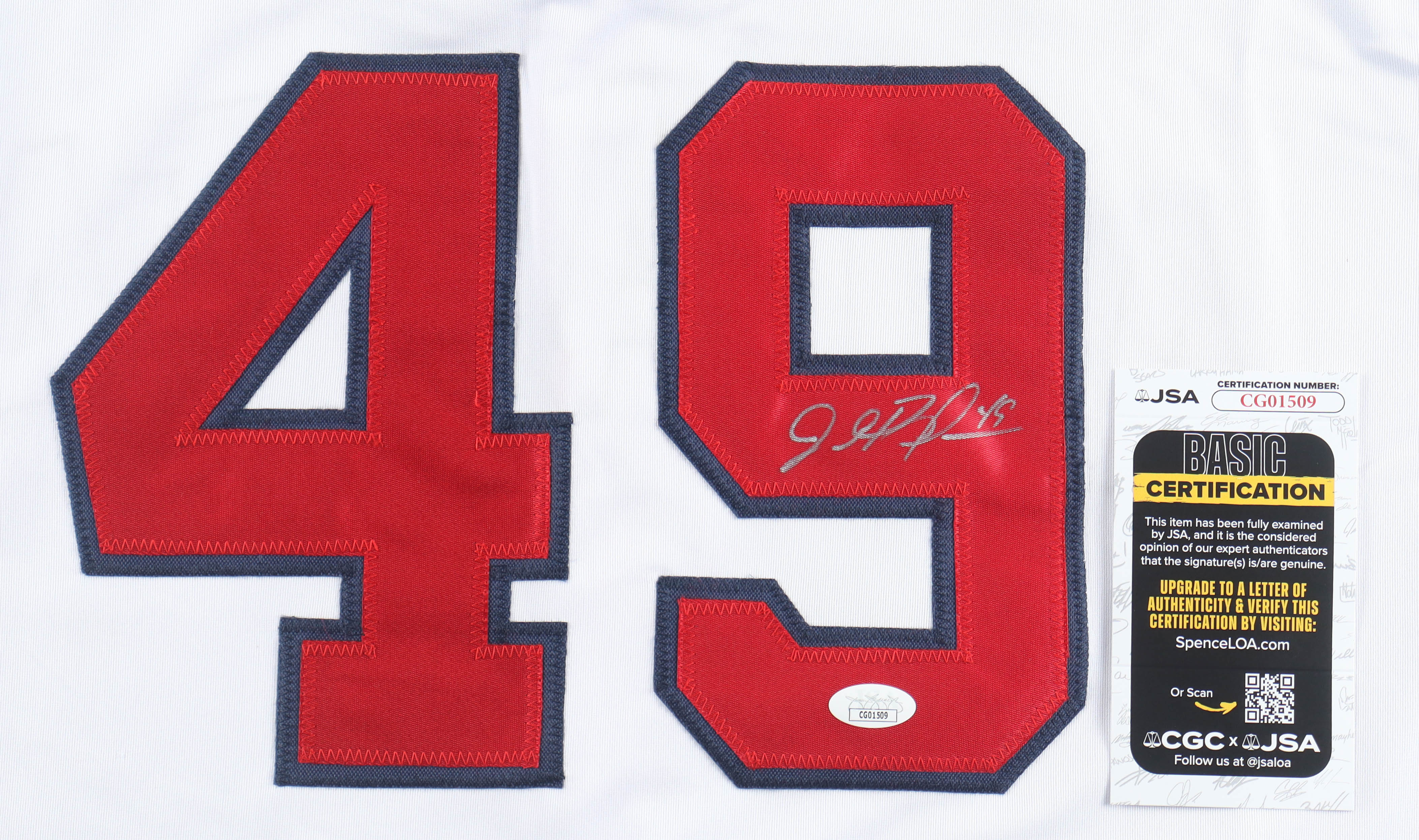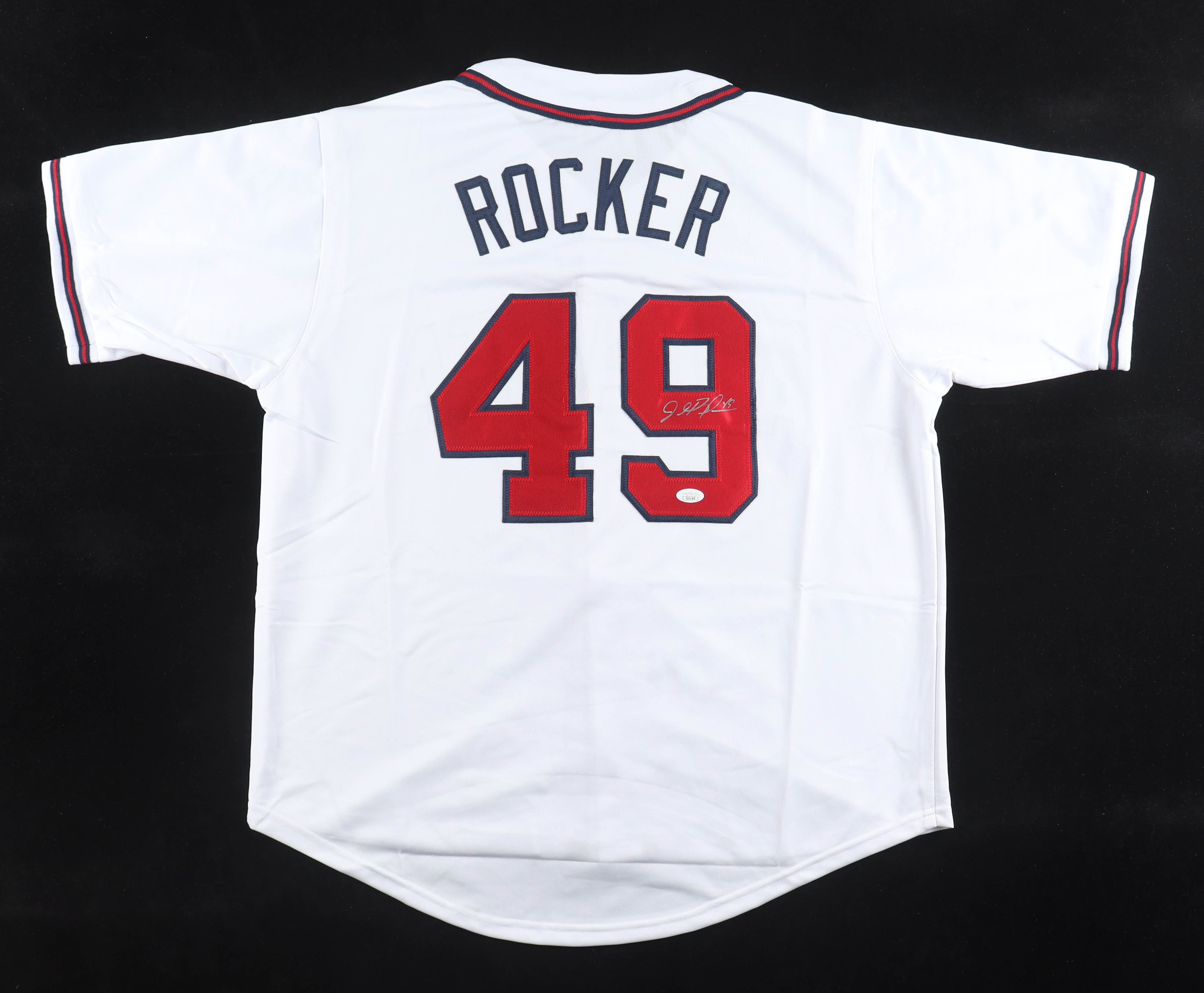 Custom jersey with everything sewn on, size XL. Hand-signed by John Rocker.