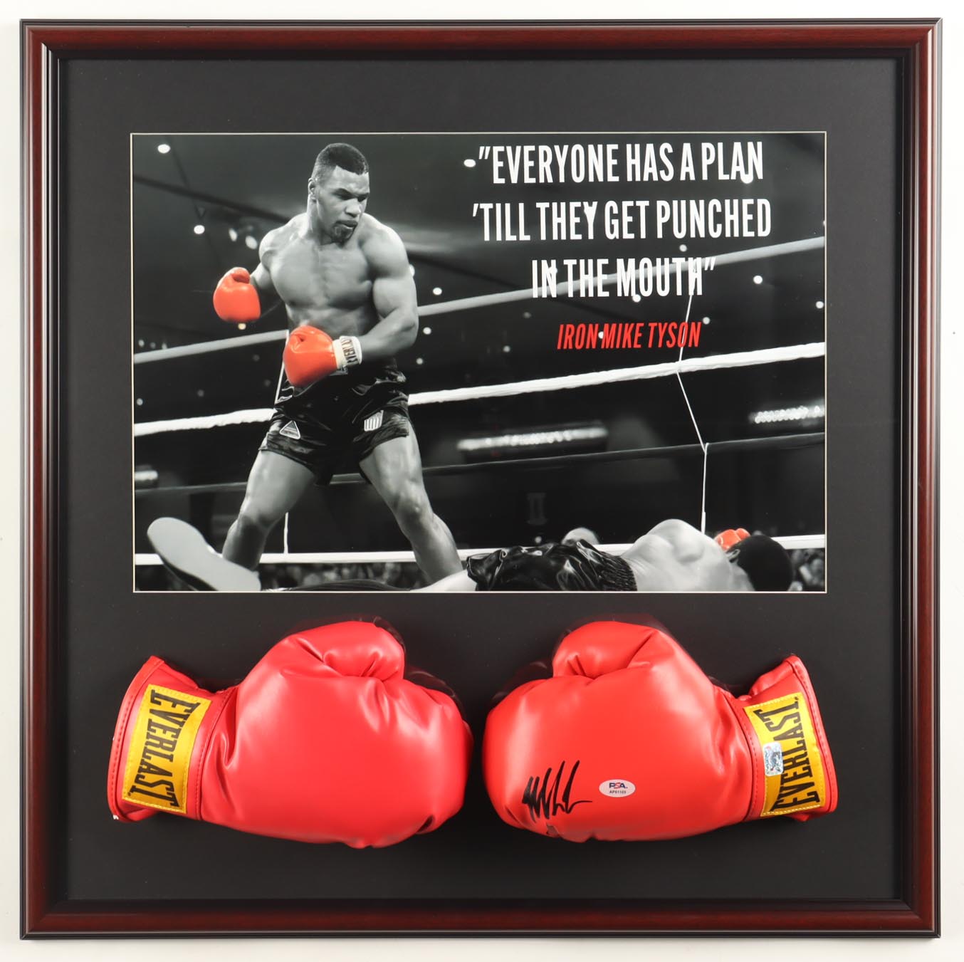 Mike Tyson Signed "Everyone Has A Plan..." Custom Framed Print Display with Set of (2) Everlast Boxing Gloves (Tyson & PSA)