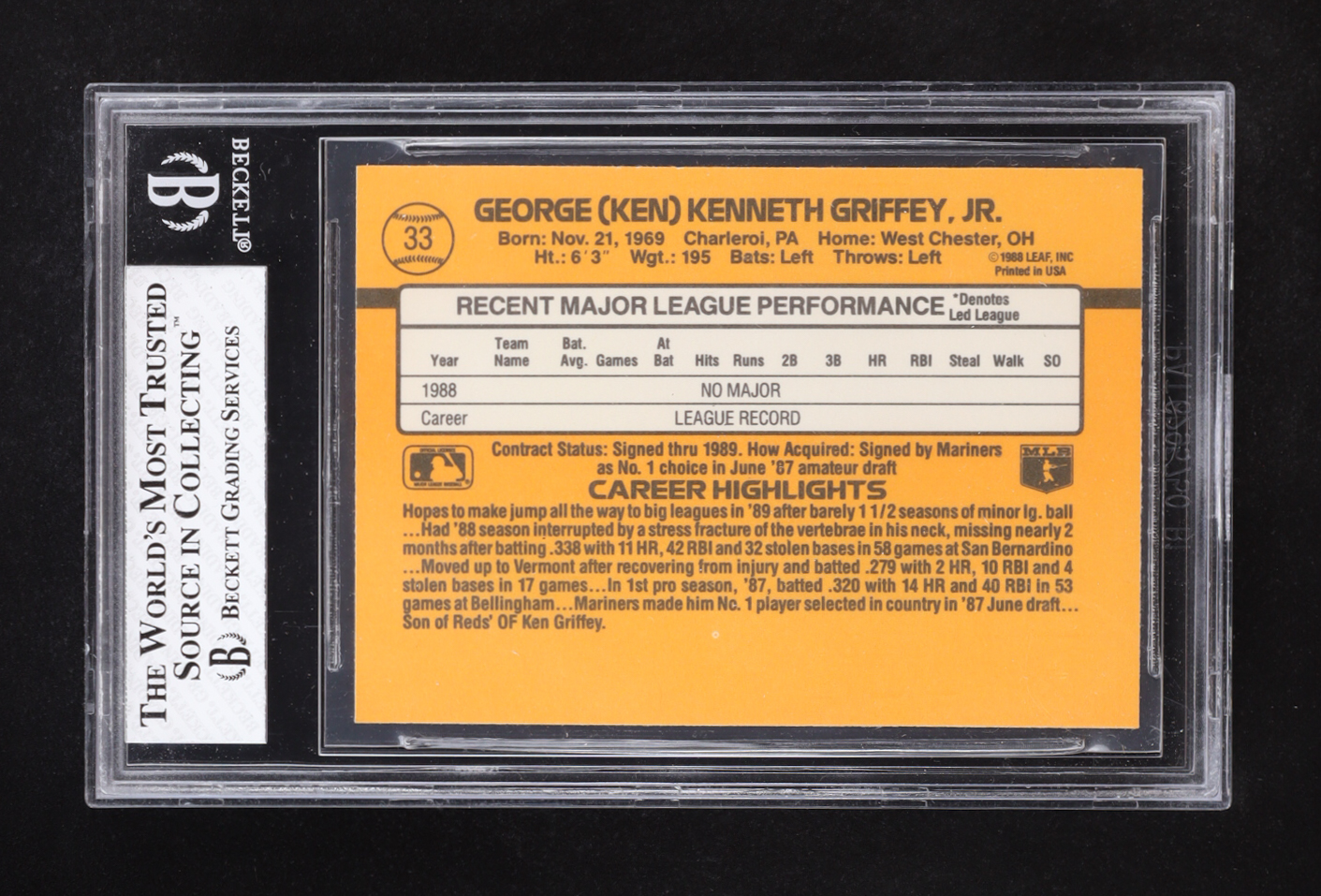 Ken Griffey Jr. 1989 Donruss RR #33 RC (BGS 8)