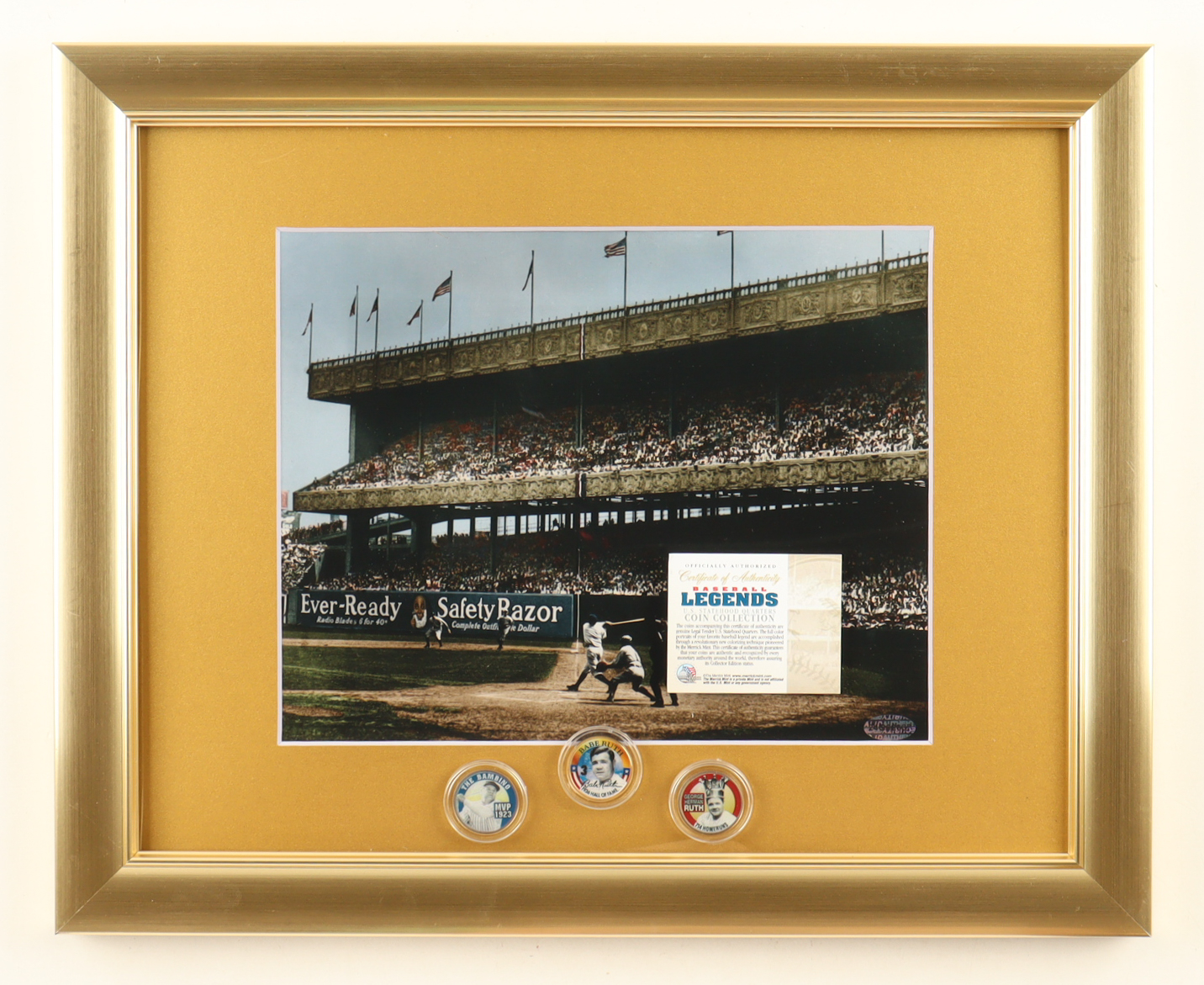 "Babe Ruth Home Run at Yankee Stadium" Custom Framed Photo Display with Merrick Mint Set of (3) Babe Ruth Coins