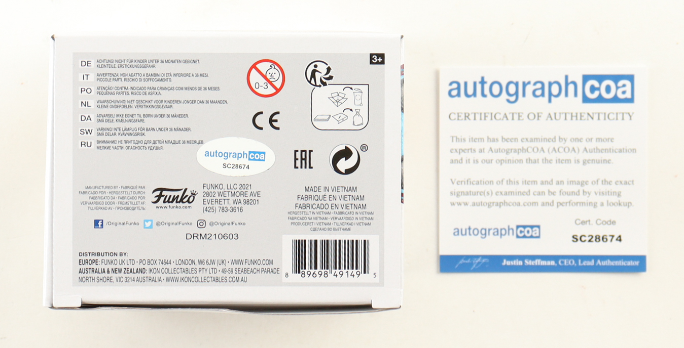 Funko Pop! figure measures approximately 4" tall. Hand-signed, inscribed and sketched on the packaging by Alan Howarth. Please note the back side has a dent on the bottom right corner.