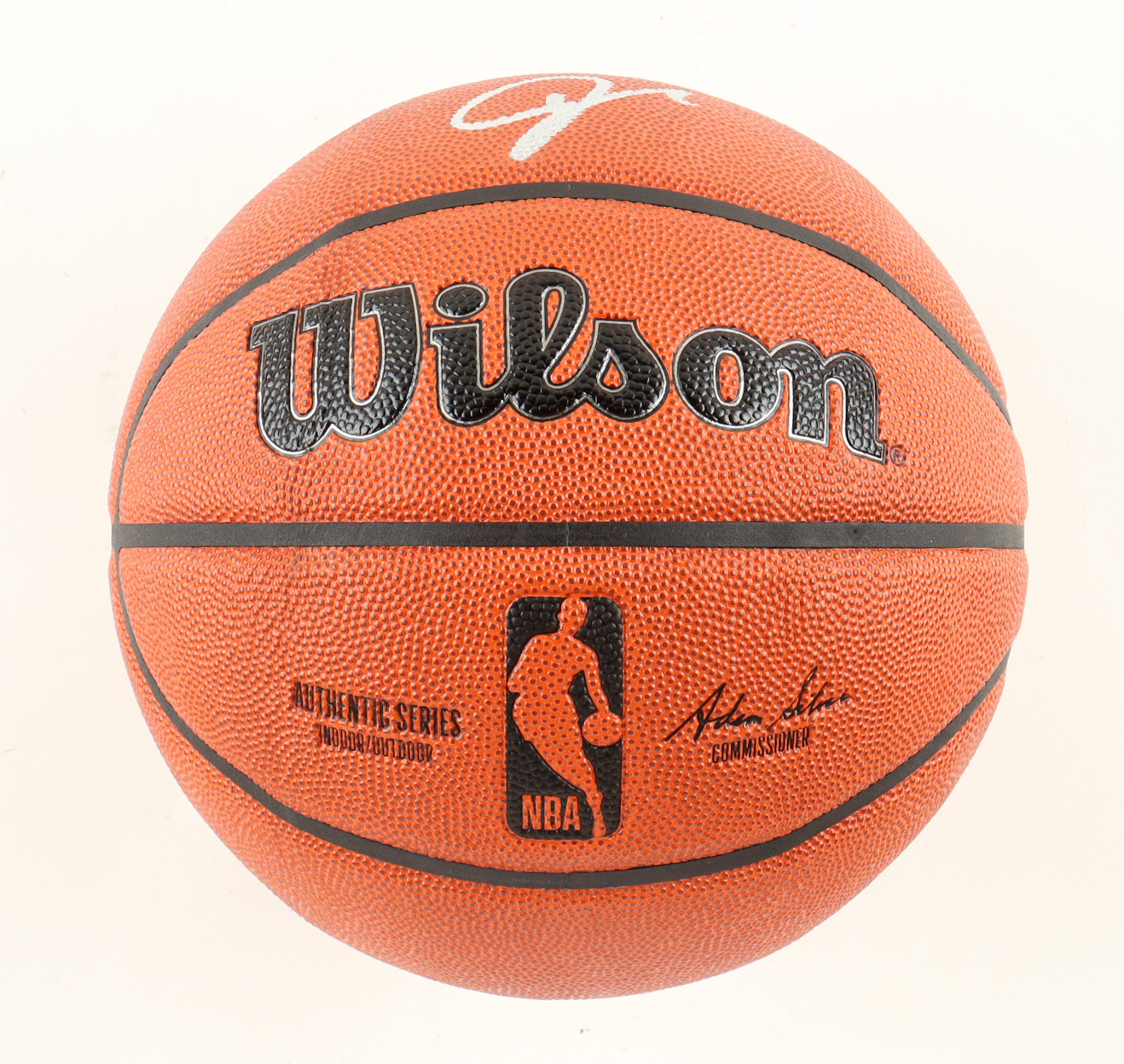 Wilson NBA Authentic Series Indoor/Outdoor basketball has been hand-signed by Giannis Antetokounmpo (Milwaukee Bucks).